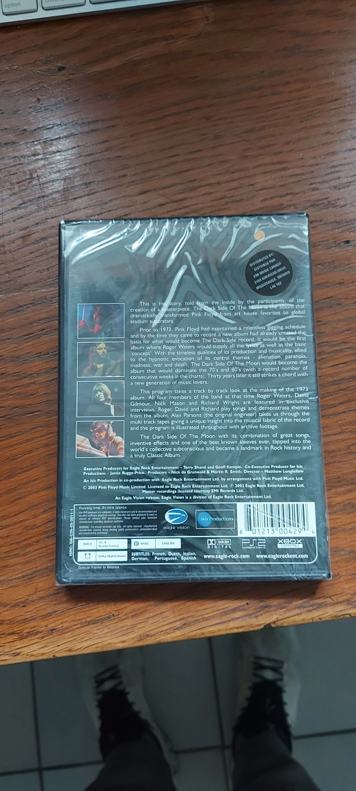148Selling a brand new, sealed DVD of Pink Floyd's 'The Dark Side of the Moon'! This features sure from Breathe / On The Run / Brain Damage / The Great Gig In The Sky. Plus exclusive individual performances by David Gilmour, Nick Mason and Richard Wright