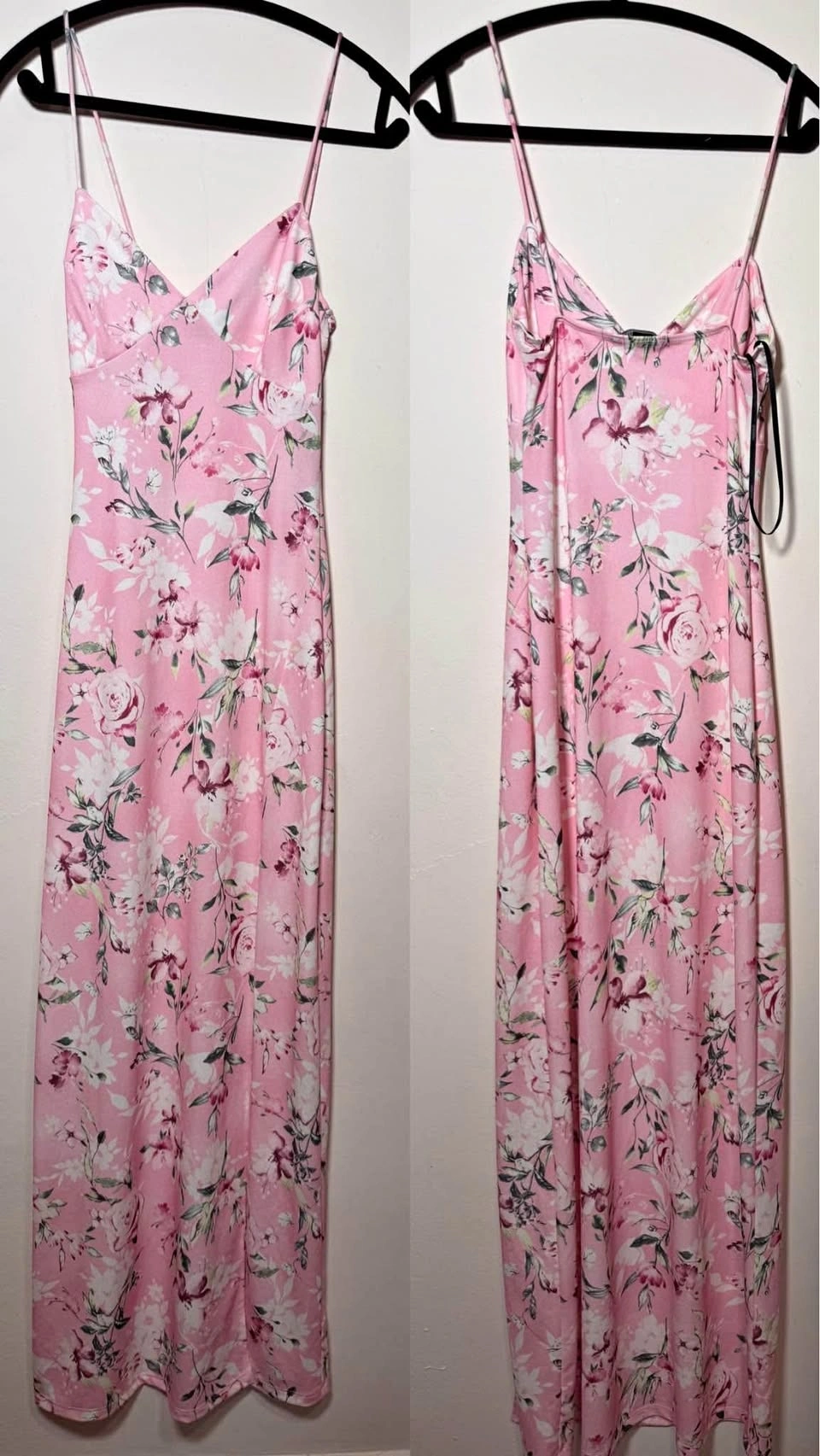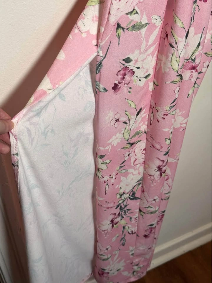 15Size S (bust of 34–35 inches, a waist of 27–28 inches, and a hip of 37–39 inches) Long pink dress with slide slit. New. Never worn. Perfect dress for perfect Wednesday… if you are mean, of course! Cash accepted. Located on Empire Avenue!