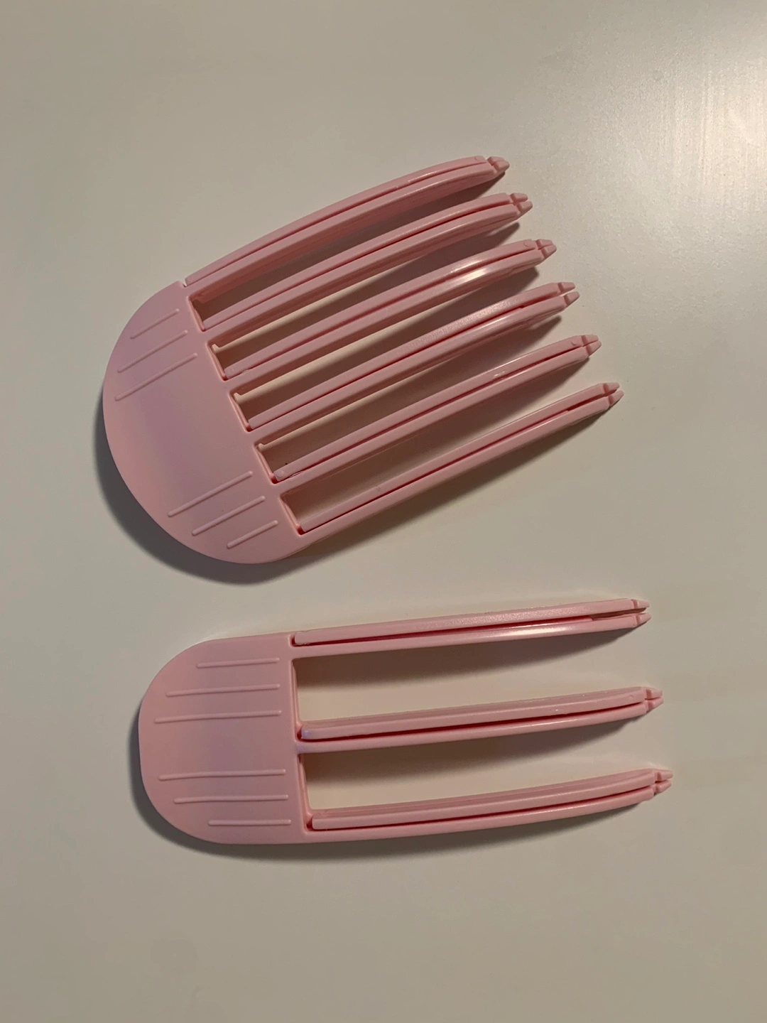 322Two pink plastic hair volume-up styling clips. One has three prongs, the other has six. L