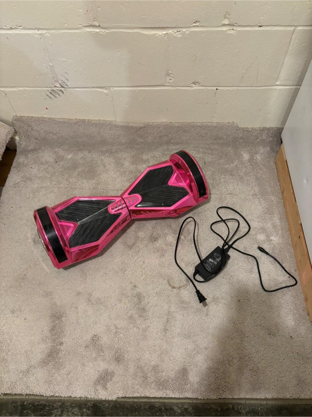 10Pink Hoverboard – $100 Pink hoverboard in good shape. Works fine, balances well, and runs for about an hour on a full charge. Got it in 2023. Has a few scratches from regular use but nothing serious. Comes with the charger.