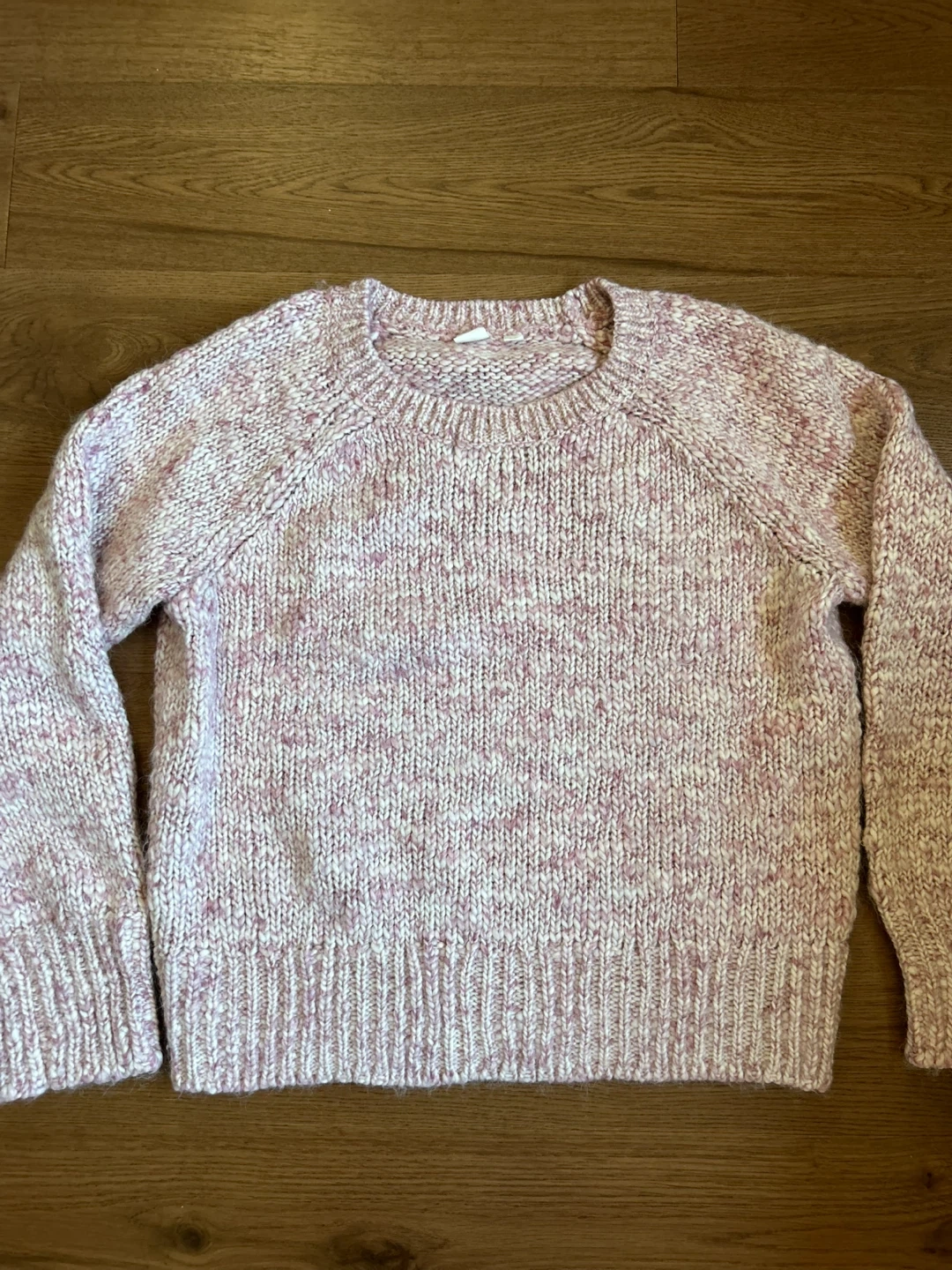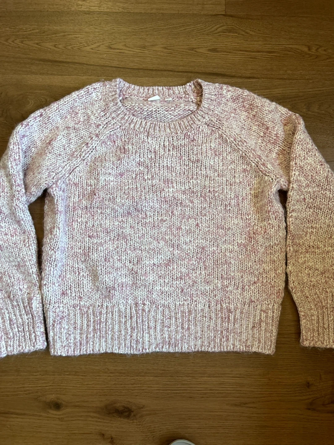 A cozy and stylish old Navy knit sweater in a lovely pink hue! It's a size medium and perfect for staying warm on chilly days. The material is soft and comfy, making it a great addition to your wardrobe