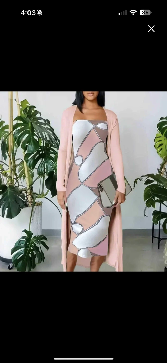 65Selling a cute pink patterned dress that comes with a matching cardigan. Brand new.
