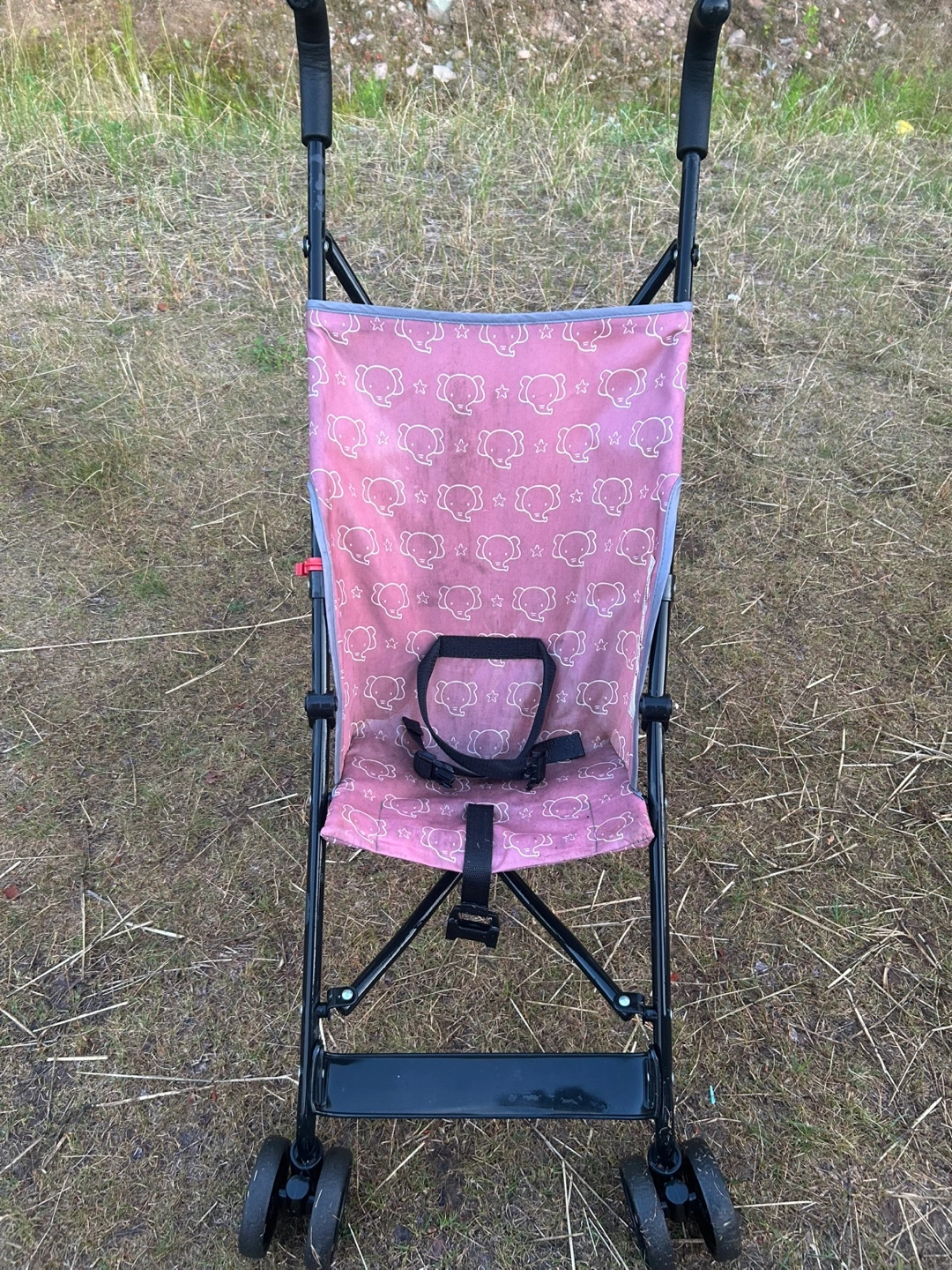 Selling a stroller with a cute pink pattern! It's in good condition and ready for a new little rider