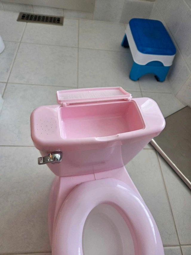 28Pink potty looks like real toilet with flushed that makes a sound For Sale By: Owner