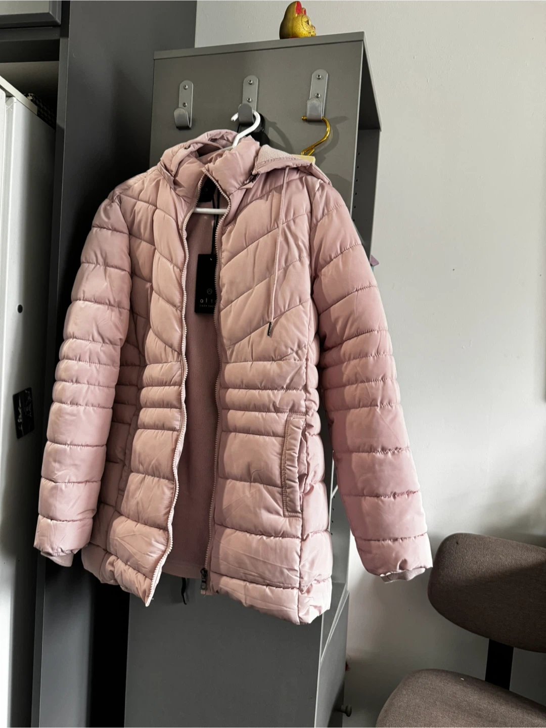 20A cute pink puffer jacket! It's in great condition and ready for a new home. Perfect for staying warm and stylish during the cooler months