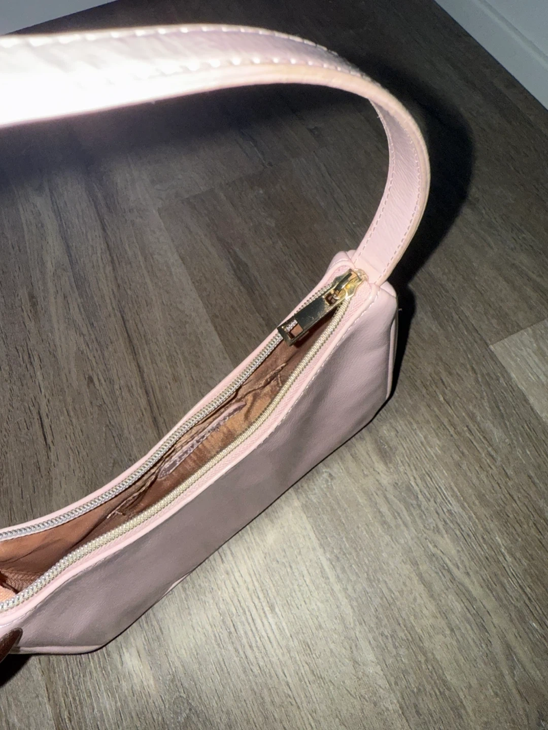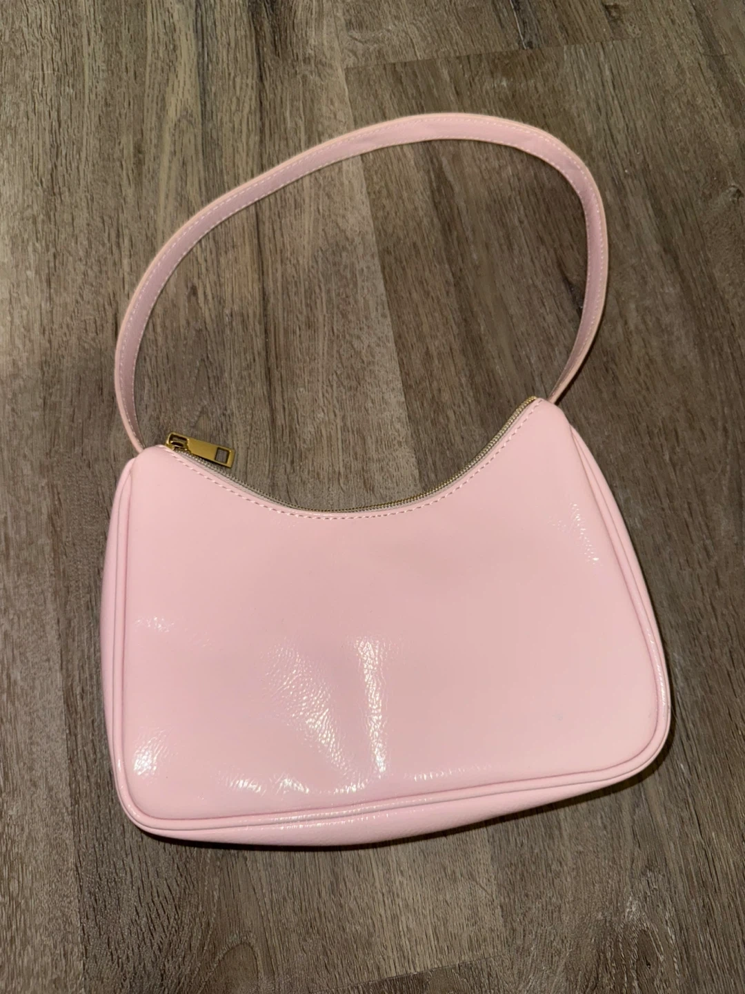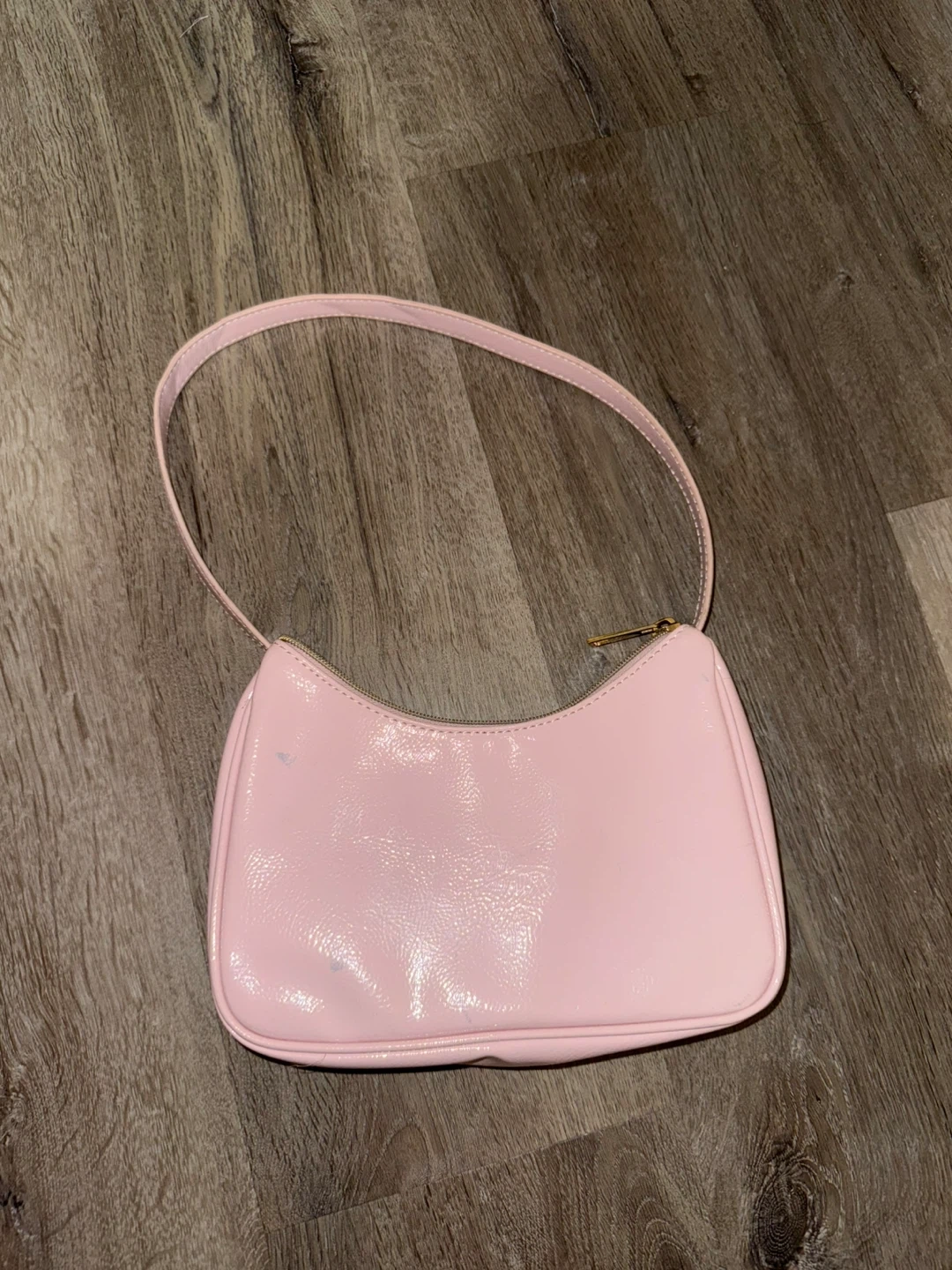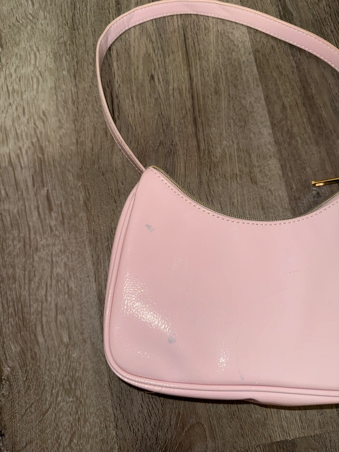 Selling a cute pink shoulder bag! It's a great size for carrying your essentials. There are some small marks on the exterior, as shown in the photos.