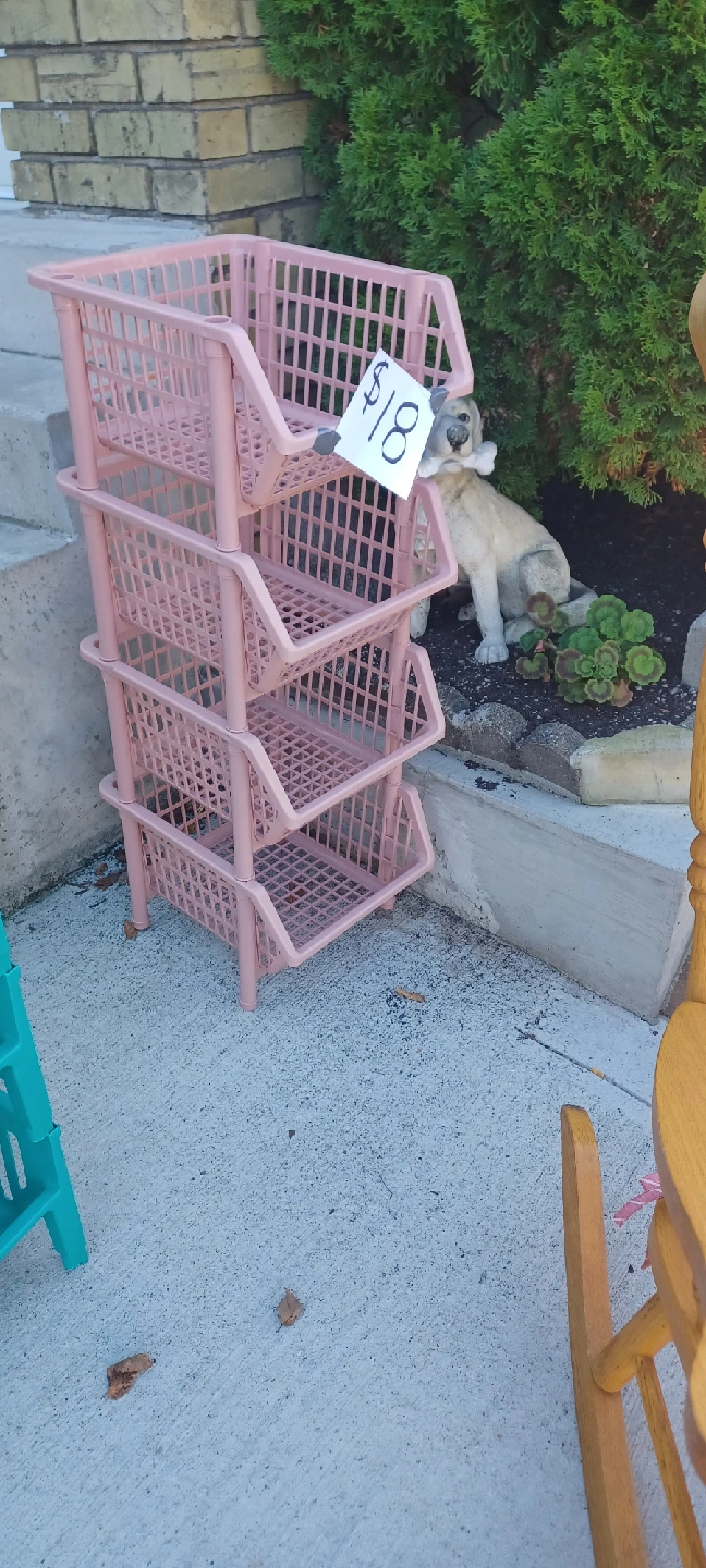 113Here are some cute pink stackable storage baskets! They are 4 tiers and would be great for organizing small items. Asking $18 PLEASE CALL I DONT ALWAYS GET MY MESSAGES, 519 729-5862 PICK UP IS AT... 415 VICTORIA ST. SOUTH KITCHENER