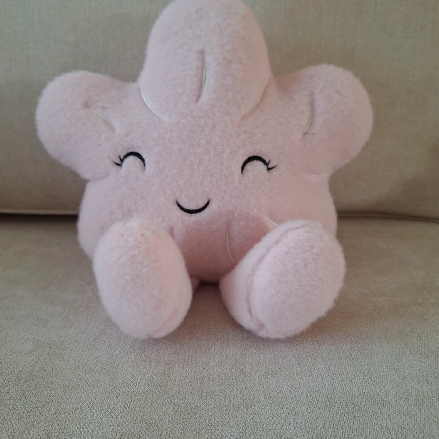 68This adorable pink star plush toy is looking for a new home! It's made of 100% polyester fibre and has a cute, smiling face. Perfect for adding a touch of whimsy to any room