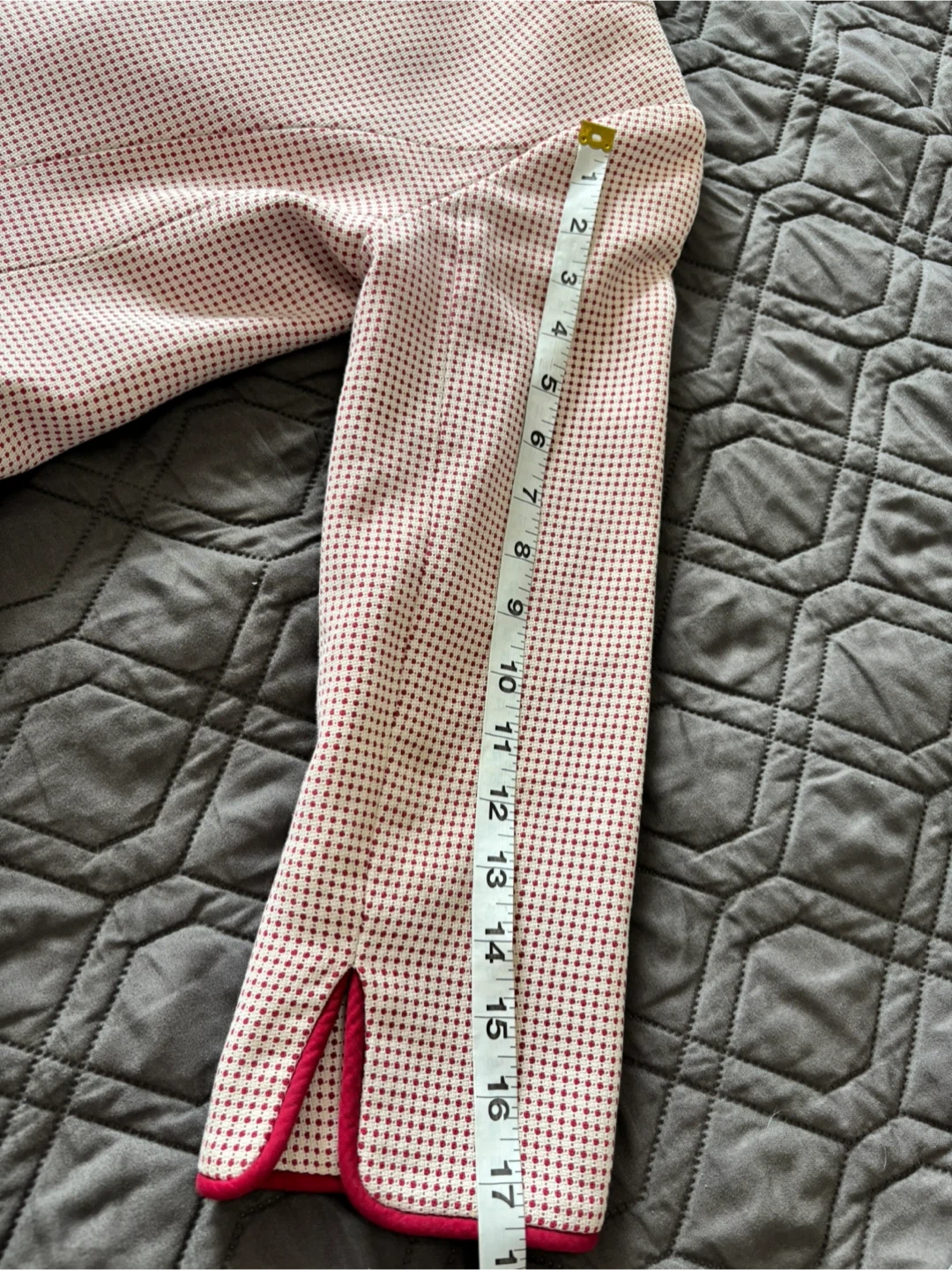 182Pick up at High Park & Bloor. Here's a lovely Pink Tartan coat in a pink and small red polka dot pattern! It's a stylish piece that would be a great addition to any wardrobe. The coat has a small hole (see picture). Purchased for $500.