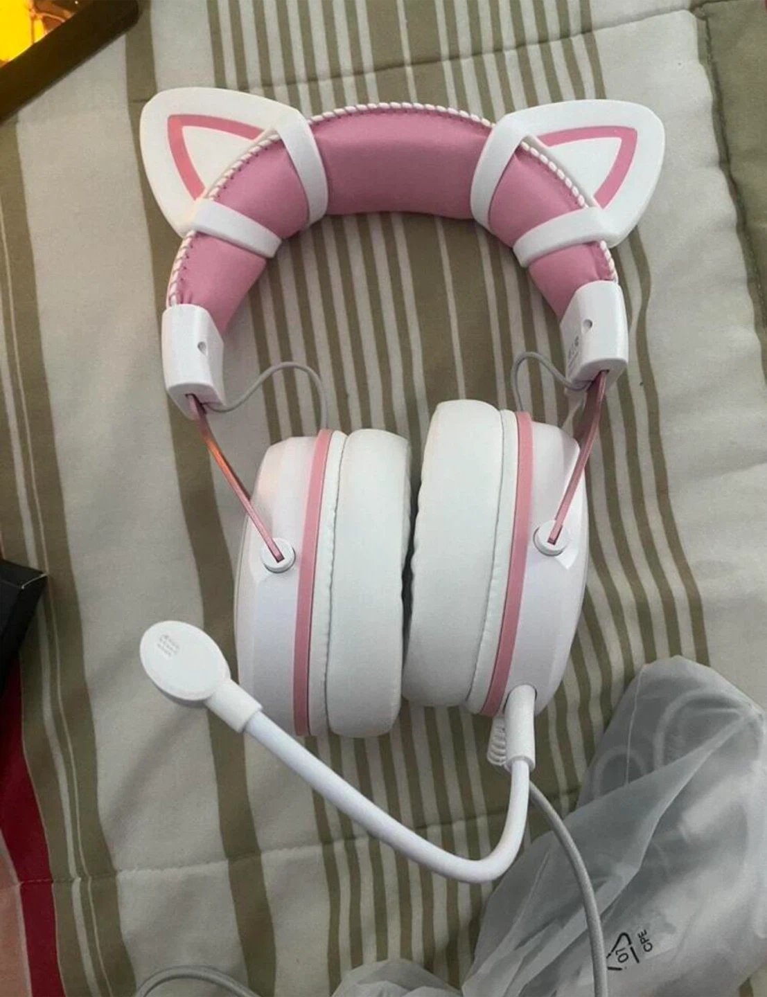 65Selling a super cute pink and white gaming headset with cat ears! Perfect for adding a touch of fun to your gaming setup. It's in great condition and ready for a new home. NEVER BEEN USED. Just NO BOX.