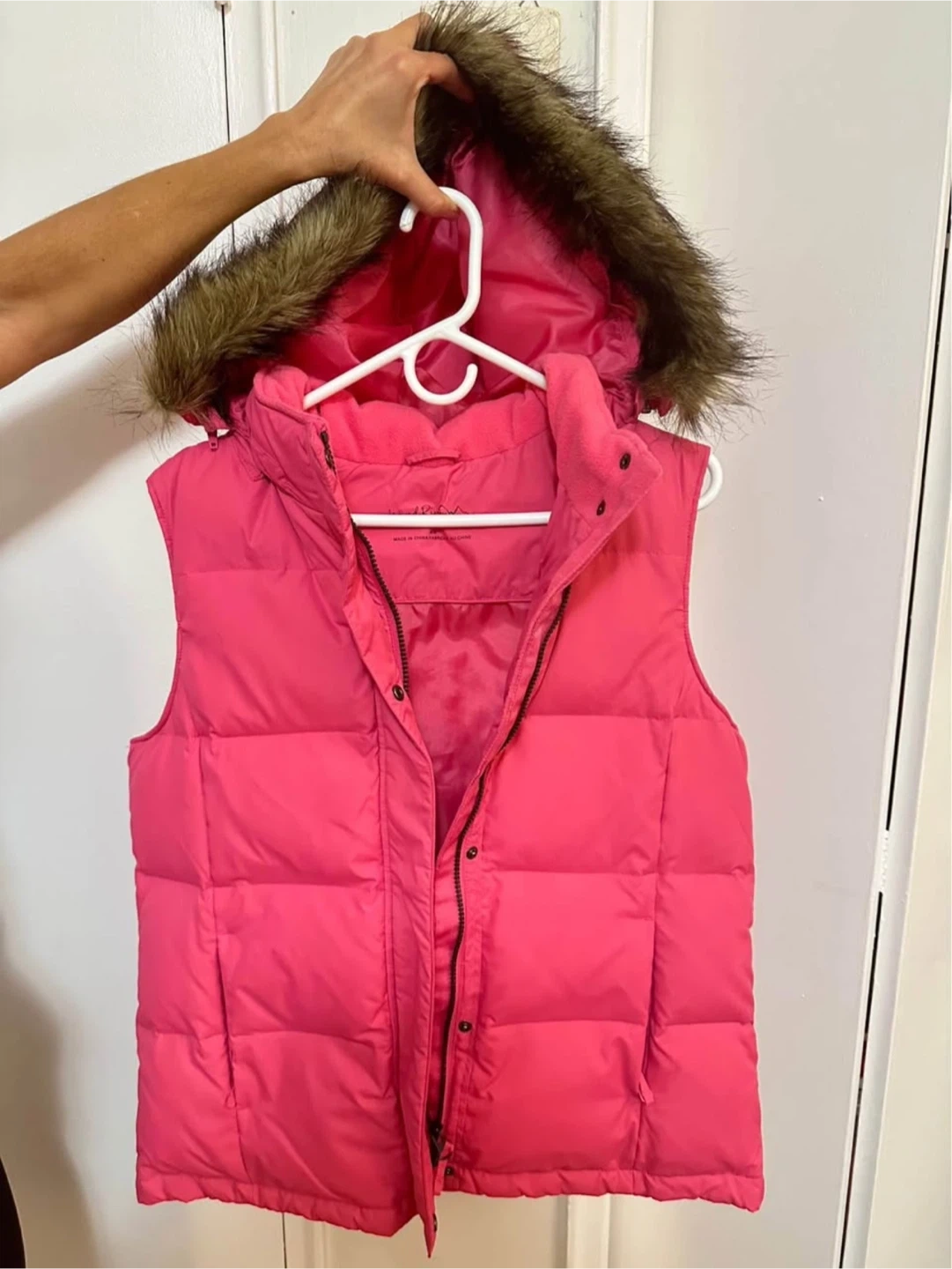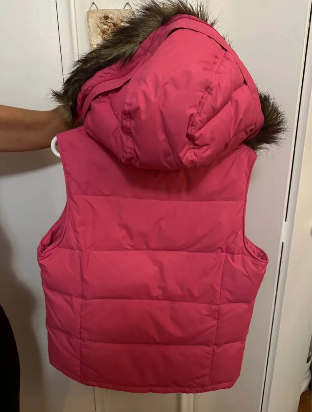 19Brand new without tag, never worn. Made of DAWN! - So super warm. 70% dawn, 30% feathers. Has two interior pockets on each side, and two exterior pockets (all with zippers). The hood can be removed as well as the fur trim. SHOULDER TO HEM: 27” PIT TO PIT: 21.5” PIT TO HEM: 15.5”
