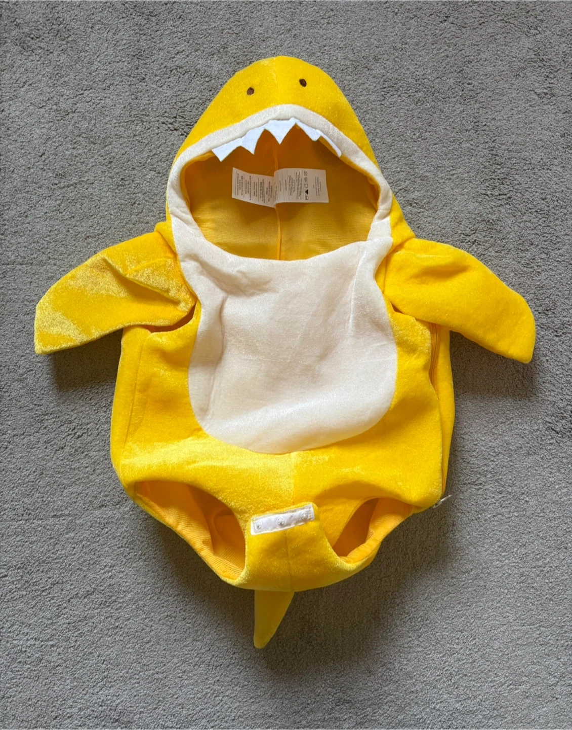 106Selling a super cute Pinkfong Baby Shark costume! It's in excellent condition and perfect for dress-up or Halloween. The size is 3-4T, so it's ideal for toddlers in that age range. Lots of room for layering also for colder weather even with a jacket. No damages or stains Worn only for a couple hours one Halloween No smoking, no pet home