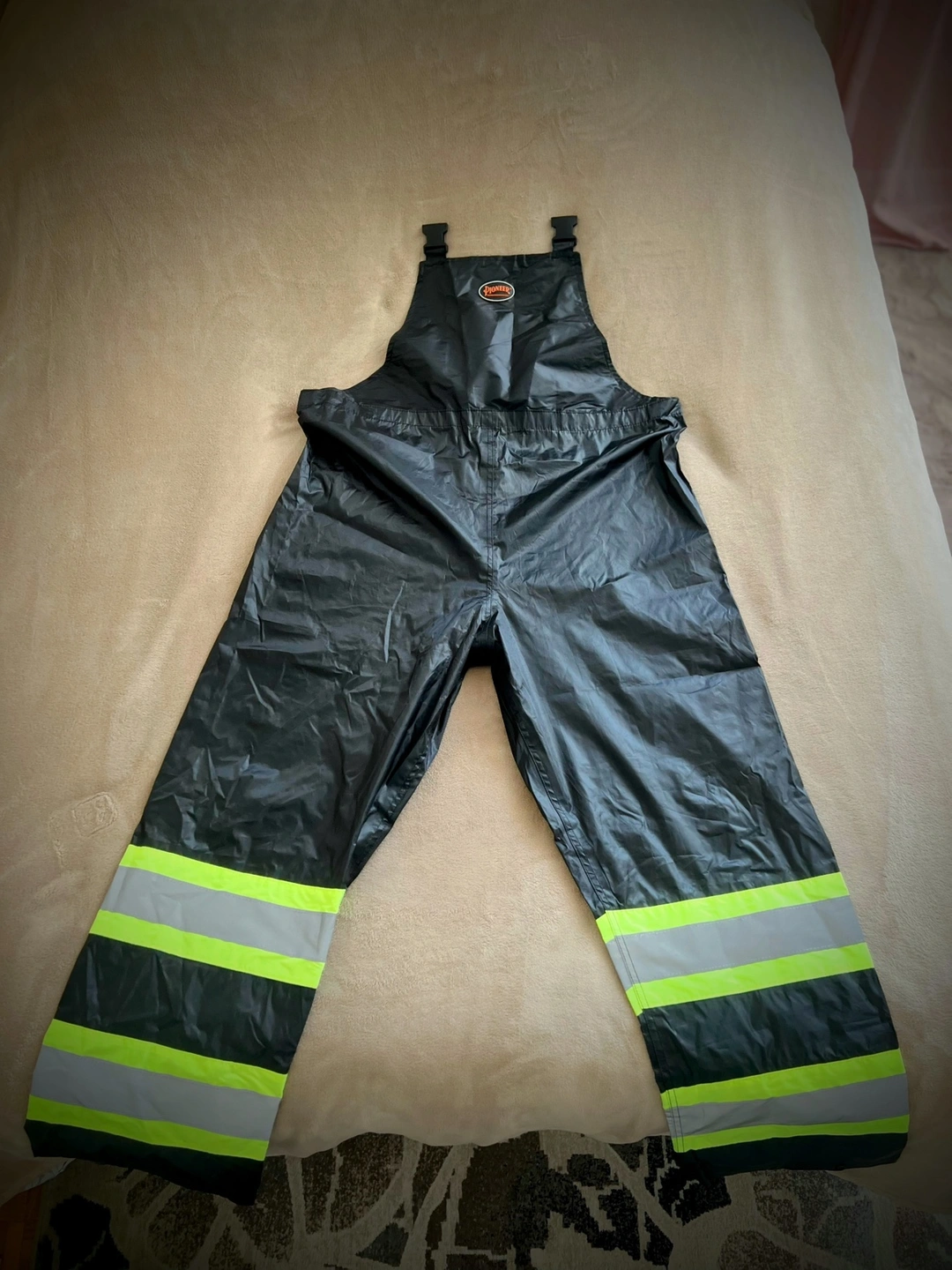 Stay safe and visible with this high-quality waterproof suit by Pioneer. - Color: Black with reflective designs for enhanced visibility - Features: - Multiple pockets for convenience - Detachable hood - Overall style pants with additional pockets - Easy adjustable clips on straps - Standards: ANSI/ISEA 107-2020, Class 1/Class E (pant) Perfect for maintaining safety and comfort in any environment. Reach out if you're interested!