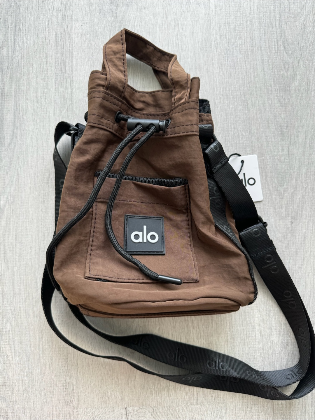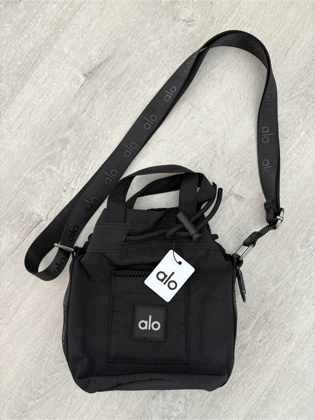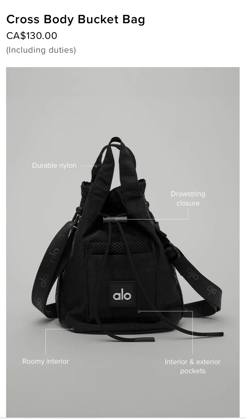 Selling an Alo Yoga Cross Body Bucket Bag! Brand new and authentic with tags. It's a stylish and functional bag with a drawstring closure and a roomy interior. It also features interior and exterior pockets for extra storage. The bag is made of durable nylon and comes with a crossbody strap with the Alo logo on it. Retails for $130!