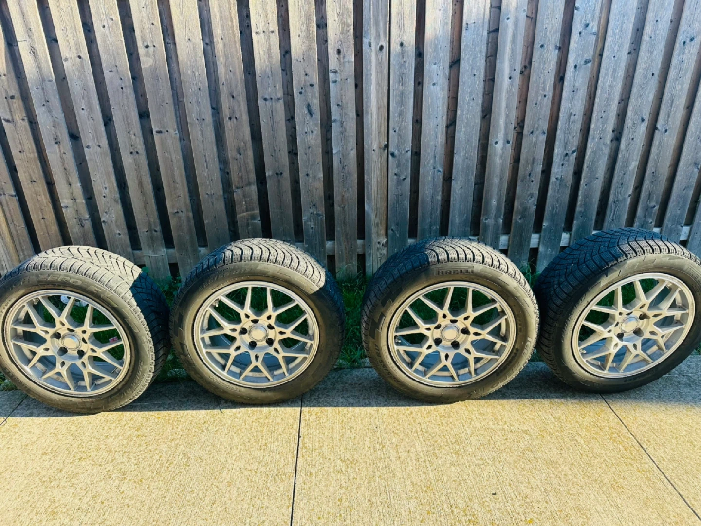 60Selling a set of four Pirelli winter tires mounted on rims. The tire size is 225/55R17. They are in good condition and ready to be installed for the winter season 225/55/R17 winter tyres in good condition.pirelli company tyres lot of thread left as you see in the pictures .Bolt pattern 5X114.3 will fit to many cars