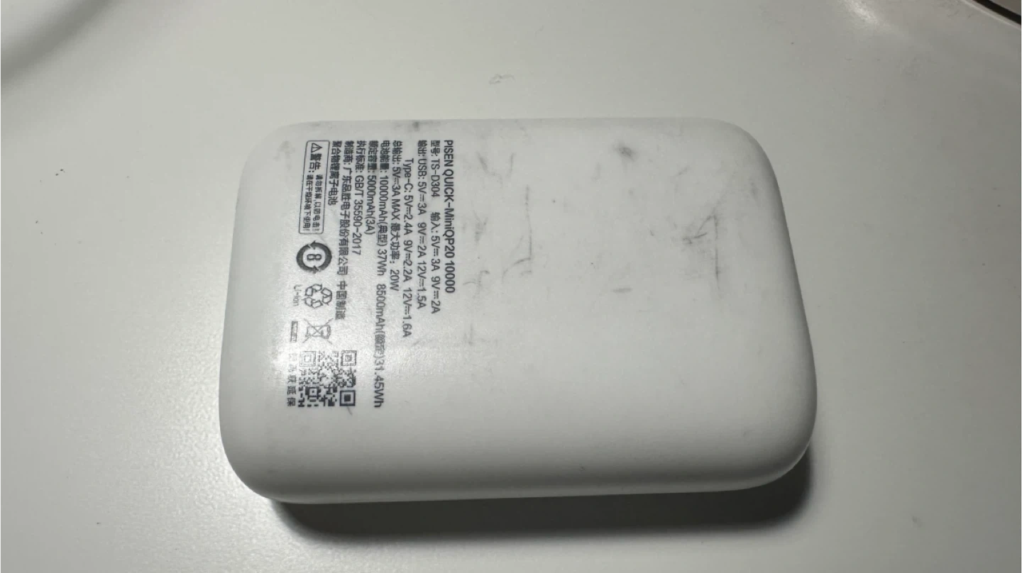 Selling a Pisen Quick MiniQP20 10000 power bank. It features adaptive quick charging and 20W output. Input is 5V=3A, 9V=2A, 12V=1.6A. Output is 5V=3A MAX. Capacity is 10000mAh (37Wh).