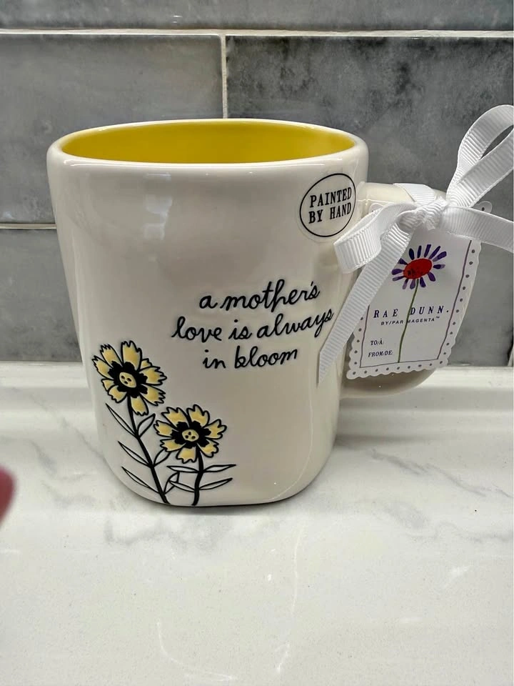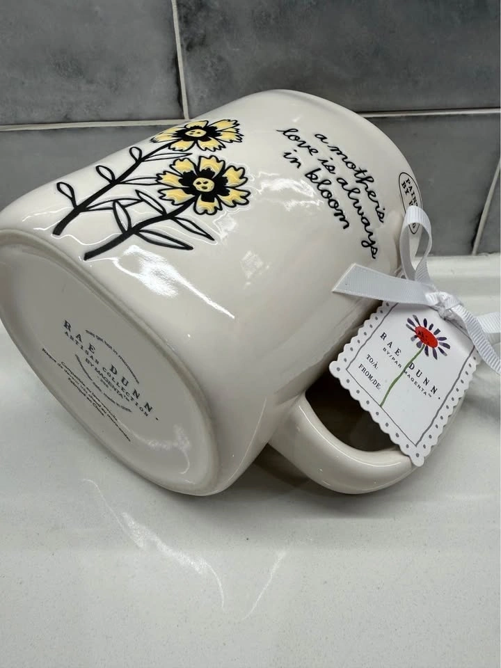 Rae Dunn Mug ~ NEW! A MOTHERS LOVE IS ALWAYS IN BLOOM ~ white & yellow πΌππ