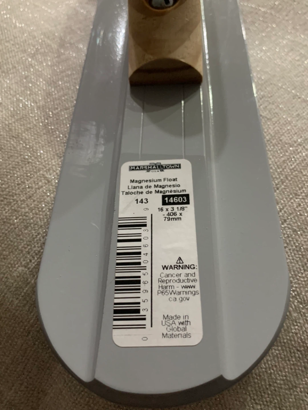 Buy & SellMarshalltown Magnesium Float 16" x 3 1/8"Marshalltown Magnesium Float 16" x 3 1/8"$35This is a 16" x 3 1/8" magnesium float. It has a comfortable wooden handle. Made in USA with global materials.WHERE TO MEET55 Dorset DrView MapSELLERArshiSouthgate363 reviews0 chats·0 favorites·5 viewsSEND CHAT TO SELLERHi Arshi! I’m interested in your listing.Hi Arshi! I’m interested in your listing.Get the Karrot app to chatSign In to chat
