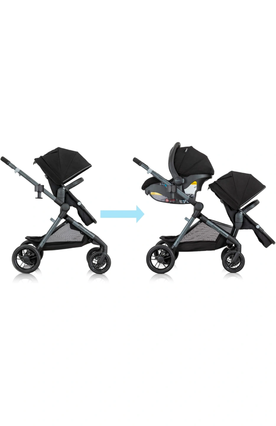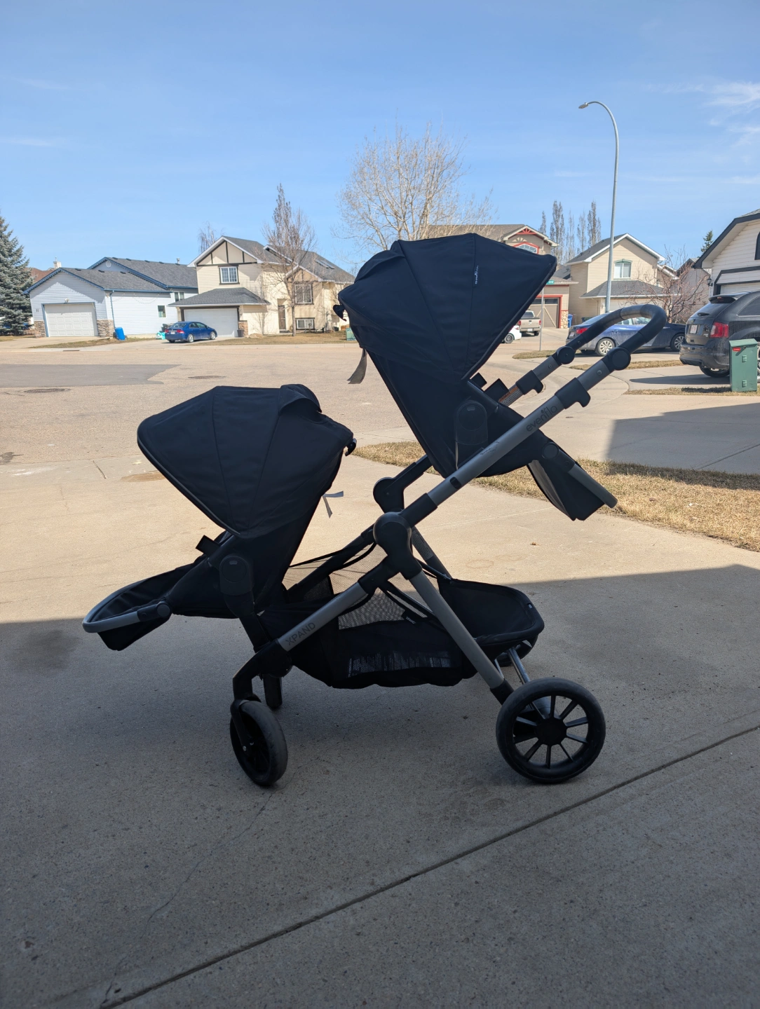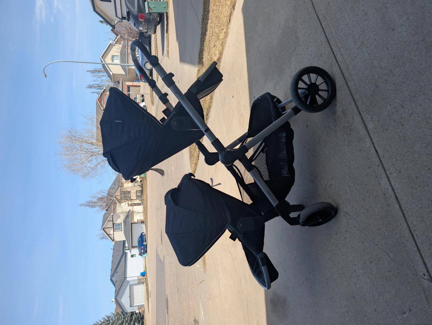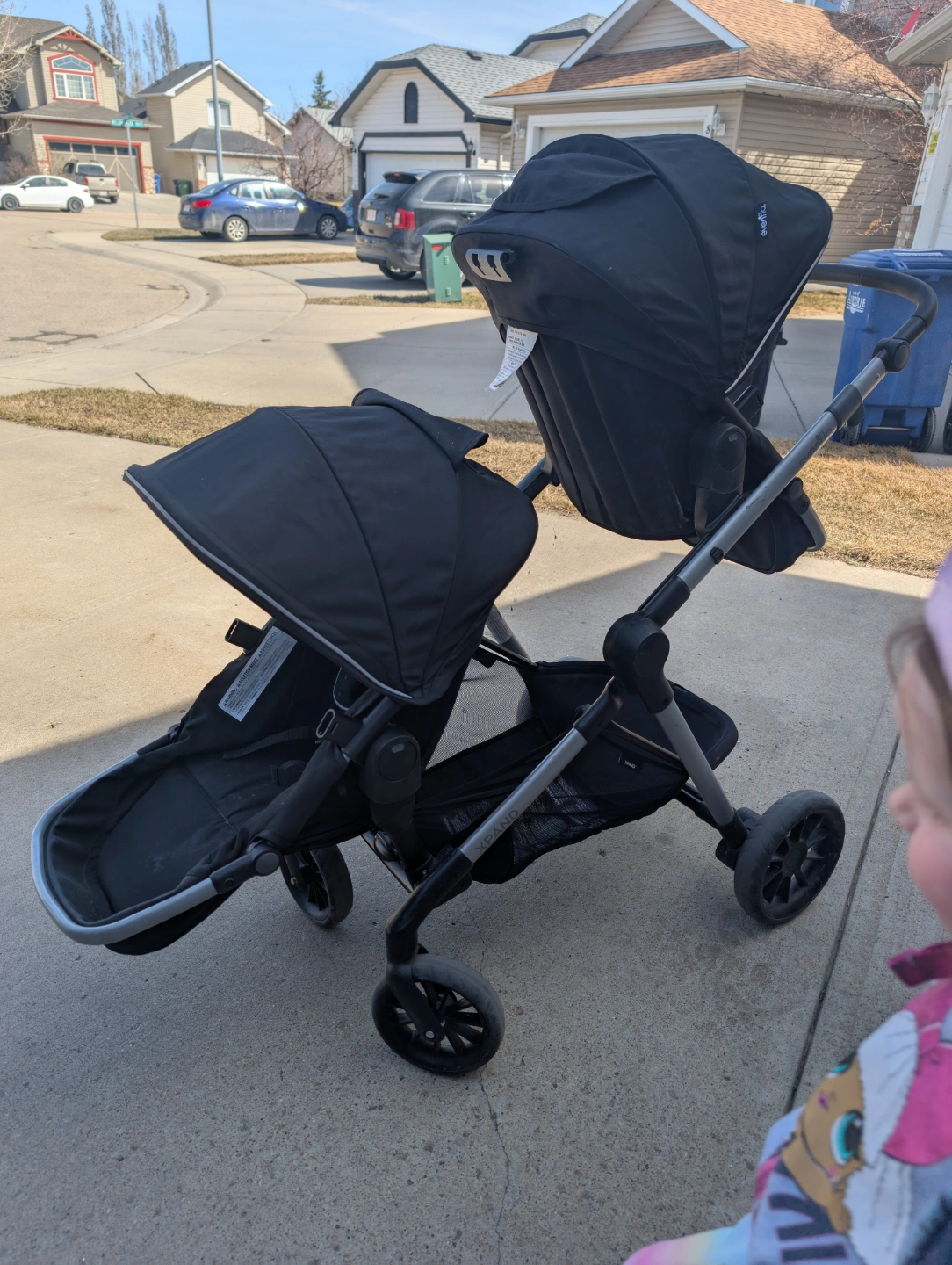 Pivot explore Xpand, come with 2 bassent to toddler seats with lots of options for laying or even putting your feet up and just relaxing while eating your favorite snacks.