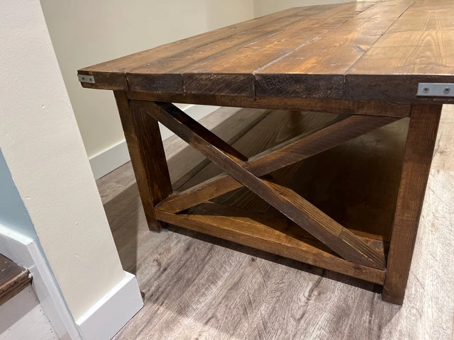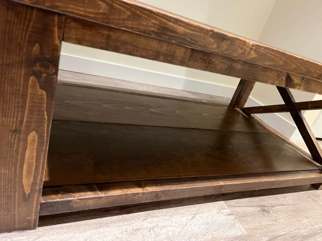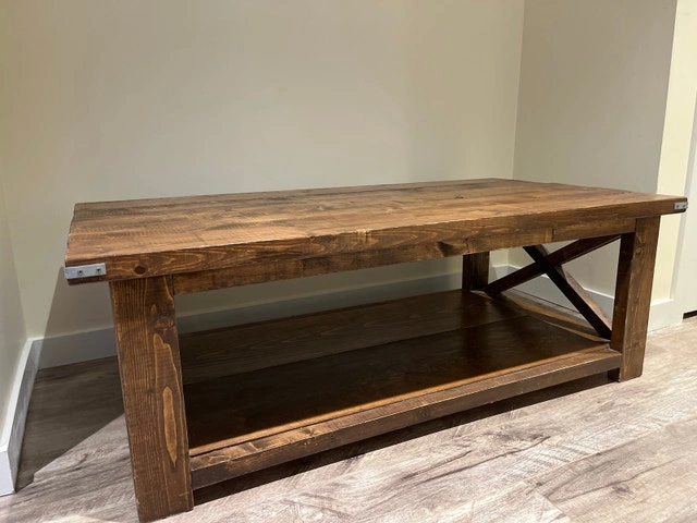 This handmade wood coffee table brings a touch of rustic charm with its sturdy construction and warm finish, perfect for anchoring your living space. As a previously loved piece, it shows some character but remains a functional and stylish addition to your home decor. Additional features include: Solid handmade wood construction, Lower shelf for storage or display, Classic design. This table has seen a few stories, and it's ready to be a part of yours. Cash accepted.