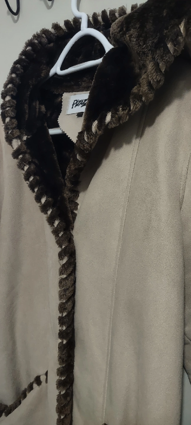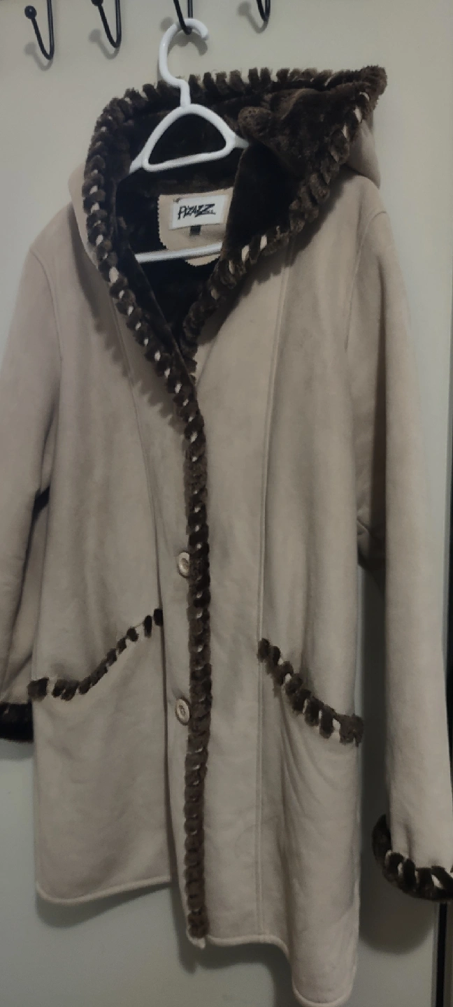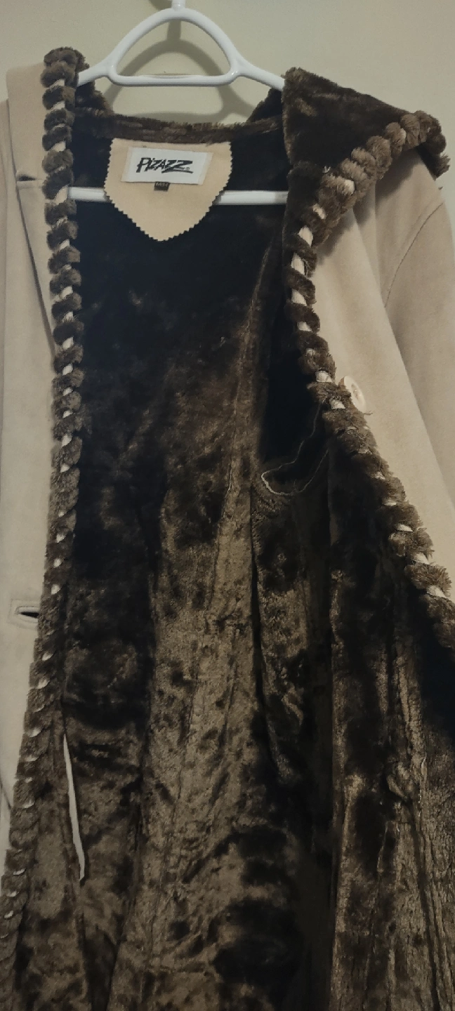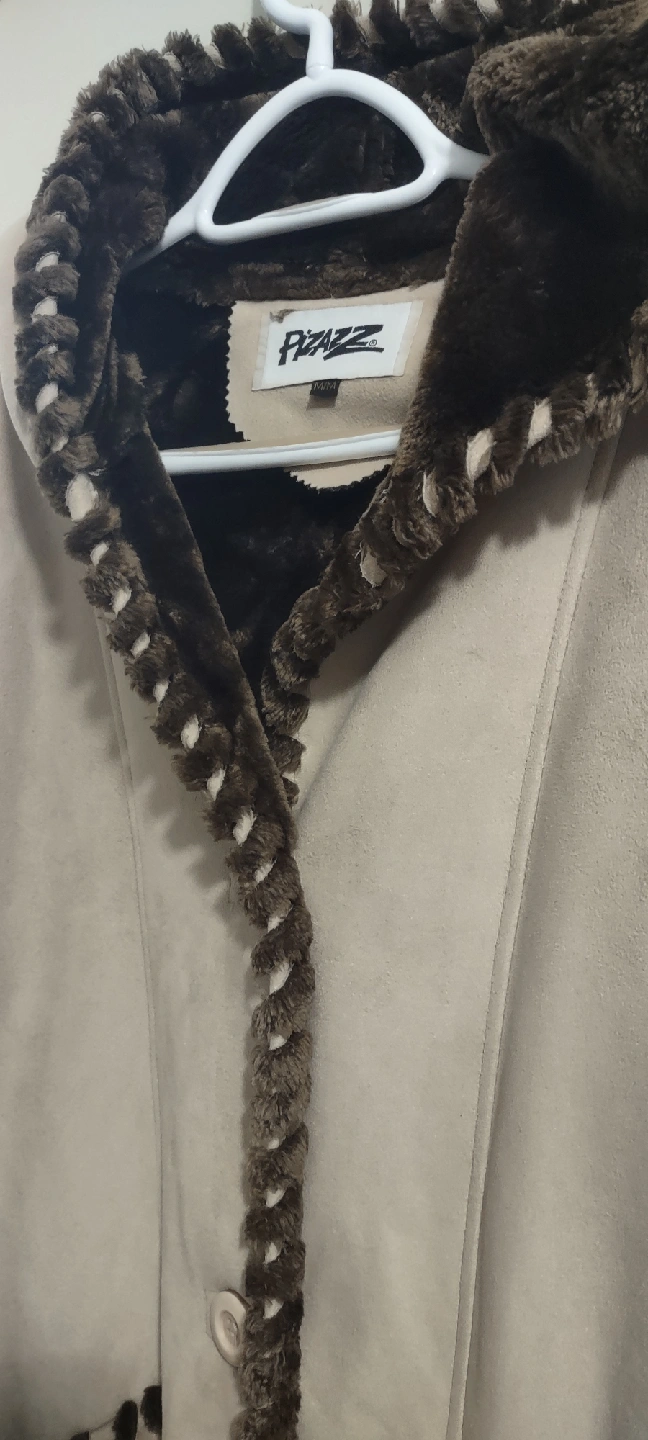 1000+Selling a Pizazz hooded coat in a size M/M! It's a lovely beige colour with brown faux fur trim. Perfect for adding a touch of warmth and style to your wardrobe during cooler days. oversize style.