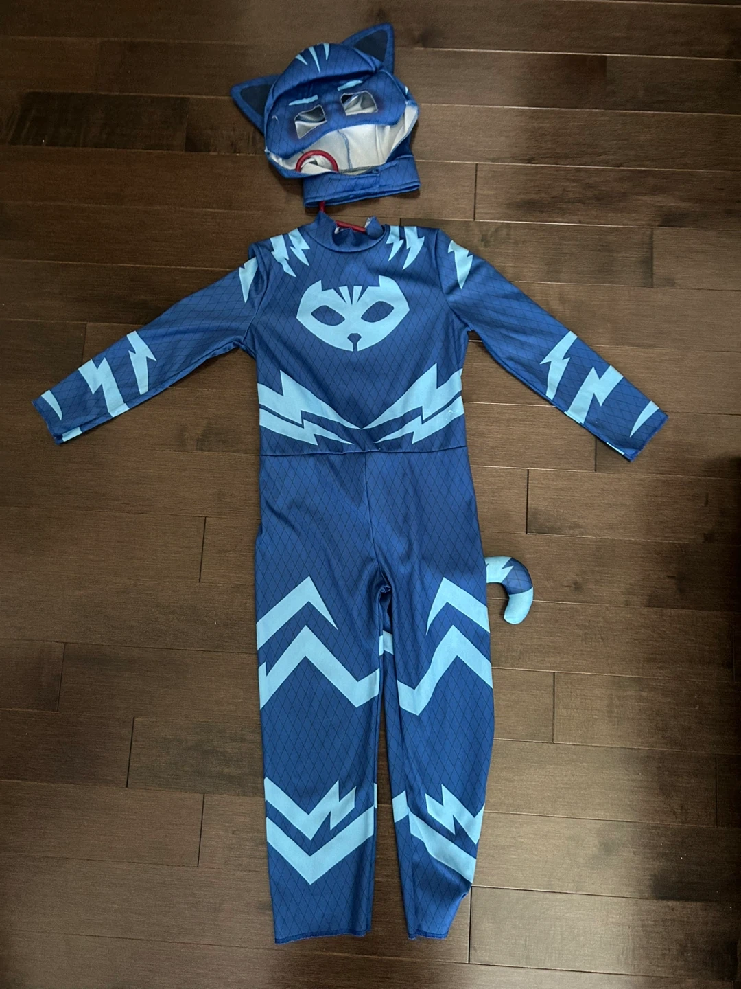 Selling a gently used PJ Masks Catboy costume! This fun costume includes the jumpsuit and headpiece. Perfect for dress-up or Halloween! Size 3T-4T