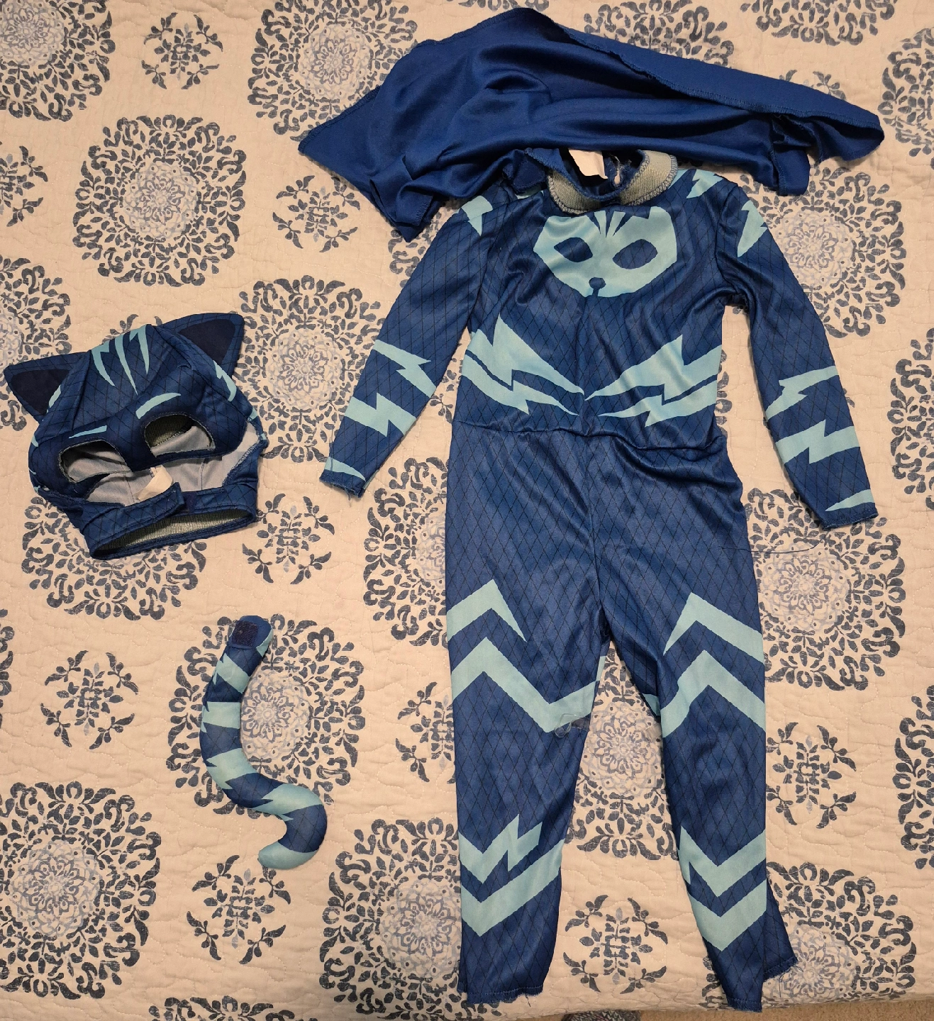 10Size 2T. Get ready to transform with this fun PJ Masks Catboy costume! It includes the jumpsuit, mask, cape, and tail. Perfect for dress-up or Halloween!