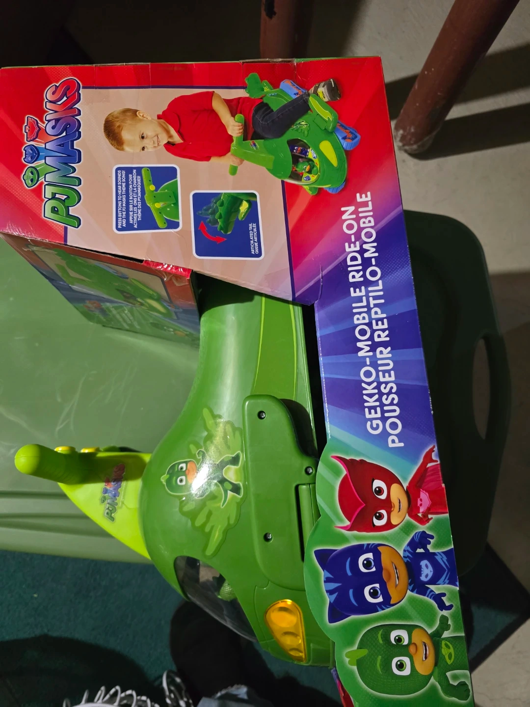 60Selling a brand new PJ Masks Gekko-Mobile Ride-On toy, still in its original box! Perfect for little ones who love the PJ Masks series. It's a fun and engaging ride-on toy that will provide hours of entertainment for your child.
