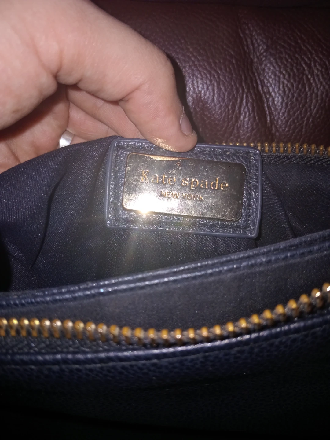 This is a Kate Spade New York purse. It's made of pebbled leather and has a zip closure with interior pockets. Some wear is visible on the straps and bottom edges asking $15 obo
