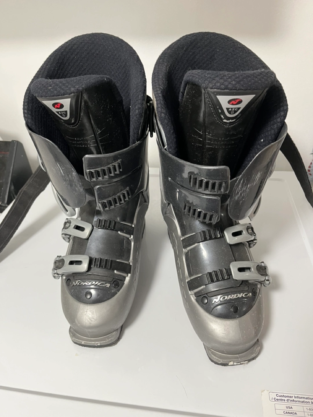 Used Nordica ski boots. Size 310mm. Flex index 80-60. Slalom hard. Ski/walk mode. Good for intermediate to advanced skiers.