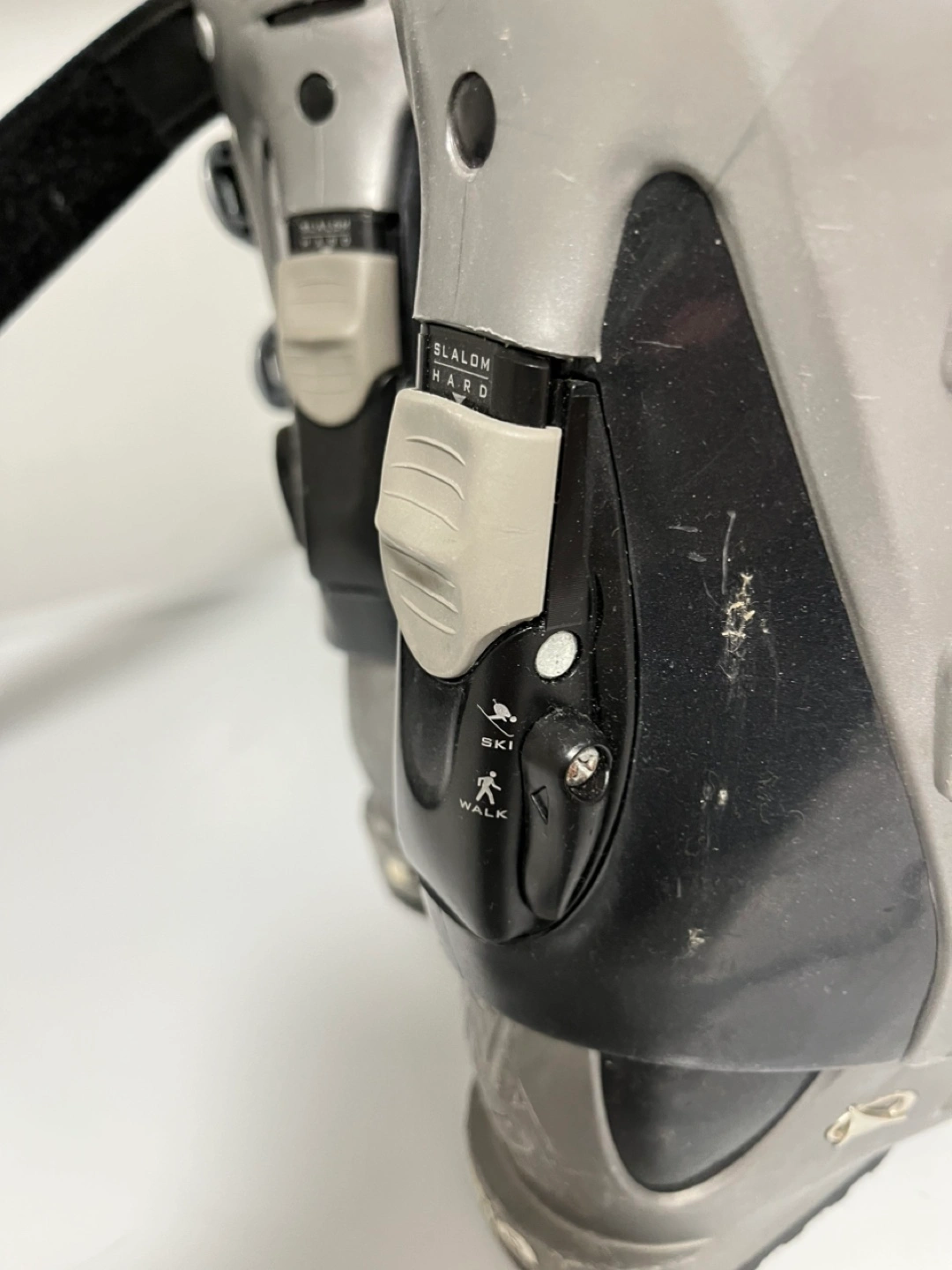 Used Nordica ski boots. Size 310mm. Flex index 80-60. Slalom hard. Ski/walk mode. Good for intermediate to advanced skiers.