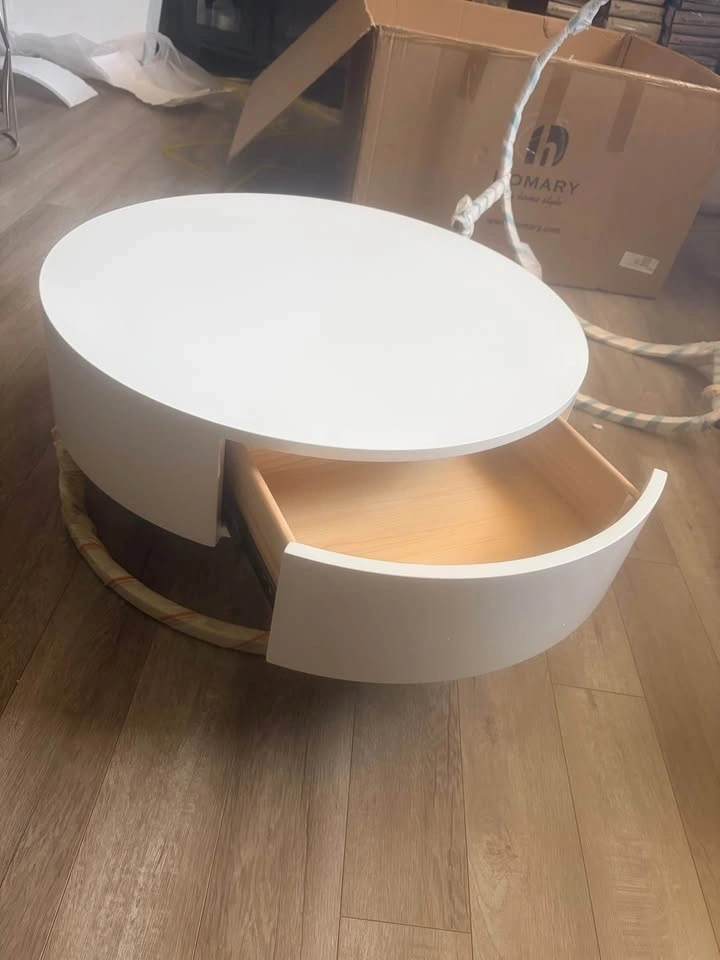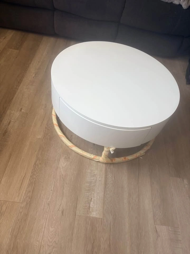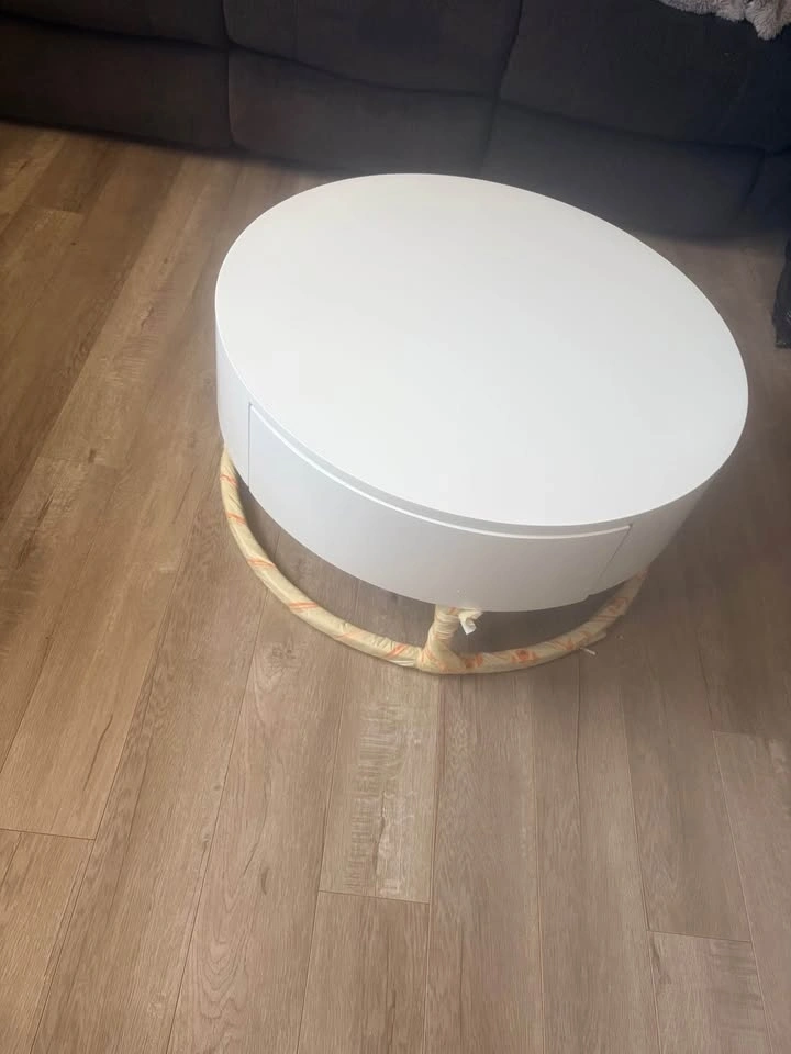 Brand new, taken out of the box for photos. Please look at the photos as this is only the lower half, and the gold base for the top is also included. The tabletop is not included. Priced low to sell quickly. The coffee table swivels. This could be a DIY project for someone who wants to create their own top frame.
