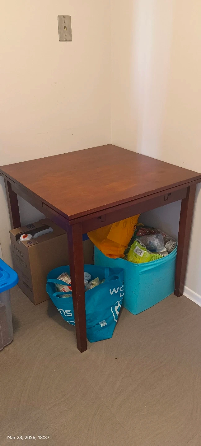 This is a Red Barrel Studio extendable dining table. It's made of solid wood with a natural finish. The table extends to accommodate more guests. This would be useful for smaller dining spaces needing occasional extra room.