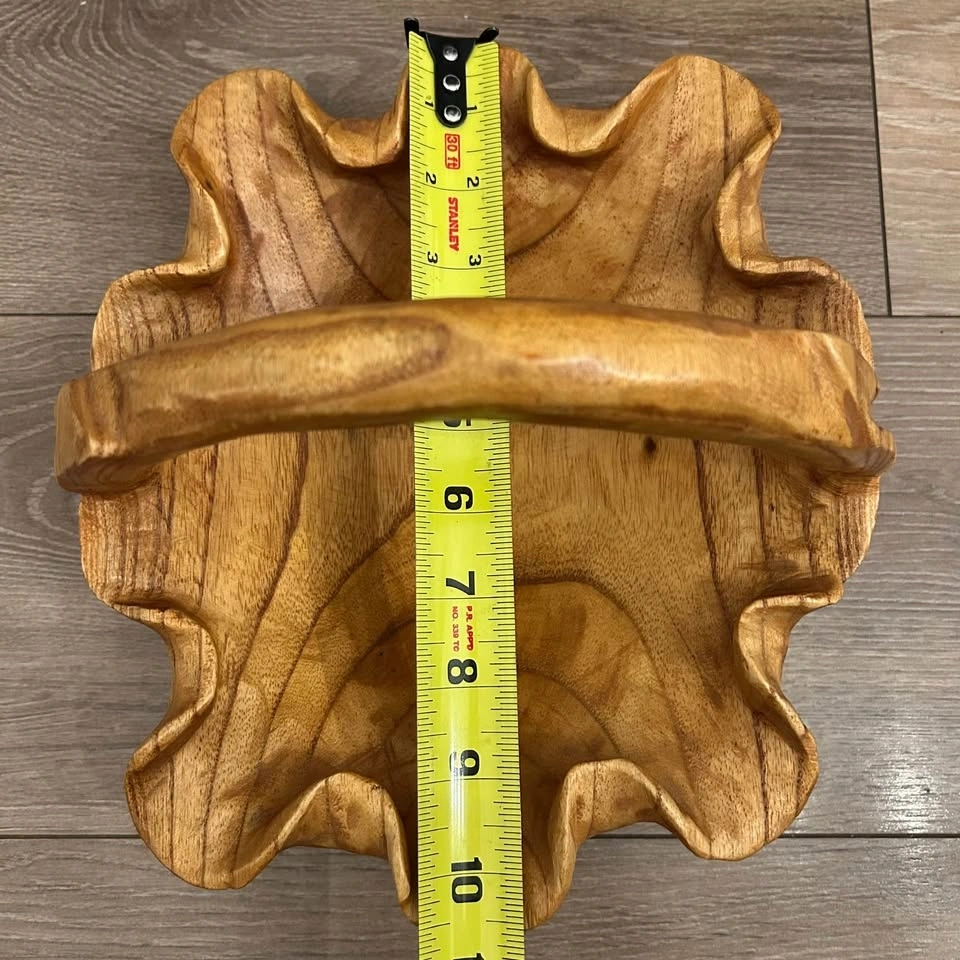 Signed Hand-Carved Monkey Pod Wood Basket – Sculptural Wavy Bowl