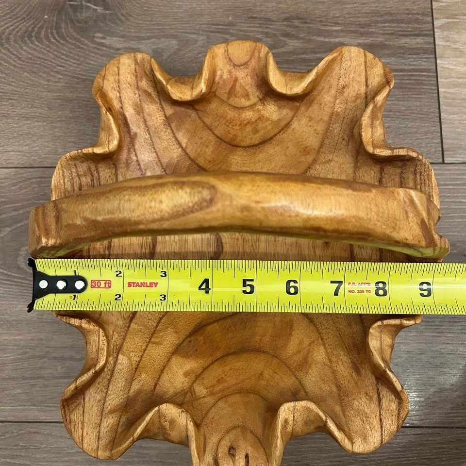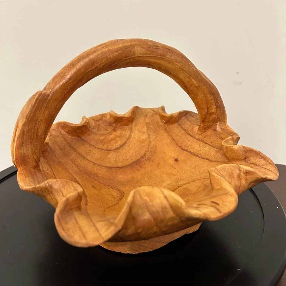Beautiful artisan hand-carved Monkey Pod wood basket featuring a striking sculptural “wavy” live-edge rim. This is a substantial, solid wood piece with rich, high-contrast natural grain that highlights the organic beauty of the material. The design incorporates a smoothly carved integrated handle, giving the piece both functionality and a strong decorative presence. The flowing form and craftsmanship make it equally suitable as a centerpiece, fruit bowl, or display object. Signed on the base with initials “AR,” adding to its uniqueness and collectible appeal. A versatile piece that fits seamlessly into Mid-Century Modern, boho, tiki, or rustic interiors, and a great find for collectors of handcrafted wooden art. Condition is excellent vintage, with a smooth satin finish and no cracks, chips, or drying. Pick up in the Seton area, Calgary. Cash or e-transfer accepted. See my other listings! Feel free to message if you have any questions!