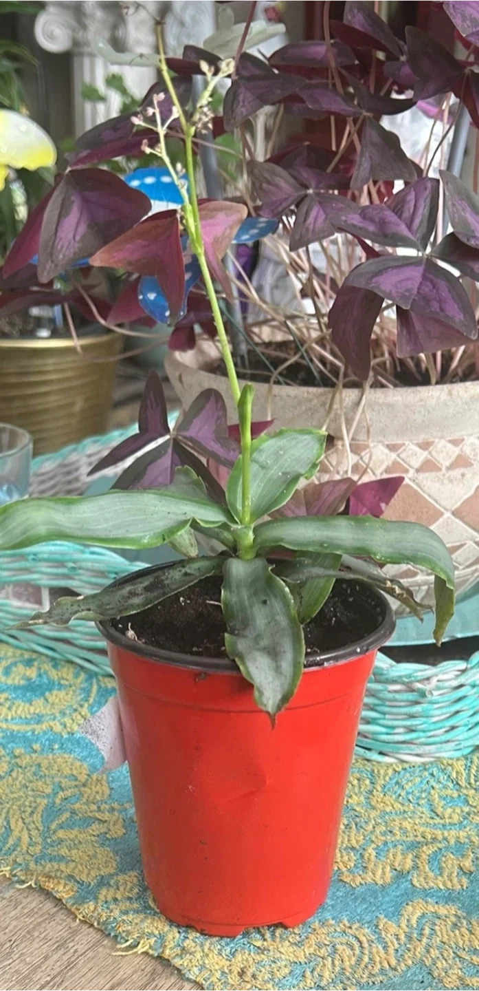 I'm selling a lovely Callisia fragans plant in a bright red pot! It's a healthy plant ready to brighten up your space. The plant has beautiful green and silver striped leaves. A great addition to any plant lover's collection