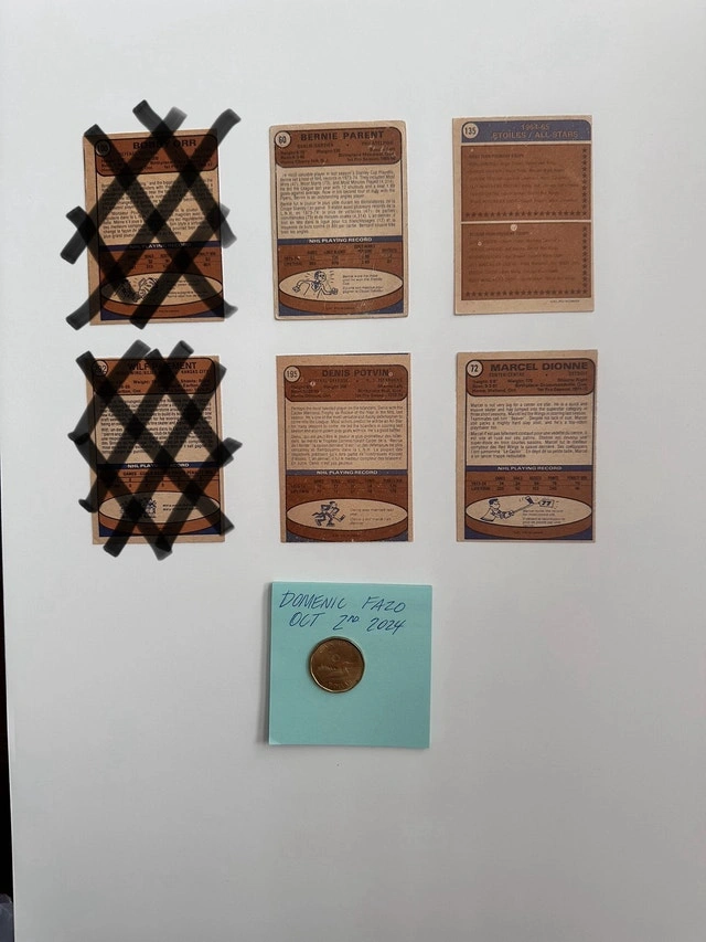 Pick up near Gardiner Exp/Royal York Road next to Mimico GO station in Etobicoke South. If add is up, it is available. Low ballers will be ignored and blocked. Dennis Potvin is the sharpest of the 4 and Bernie Parent is the roughest (with creases), the other 2 are in very good to excellent condition. Cash accepted.