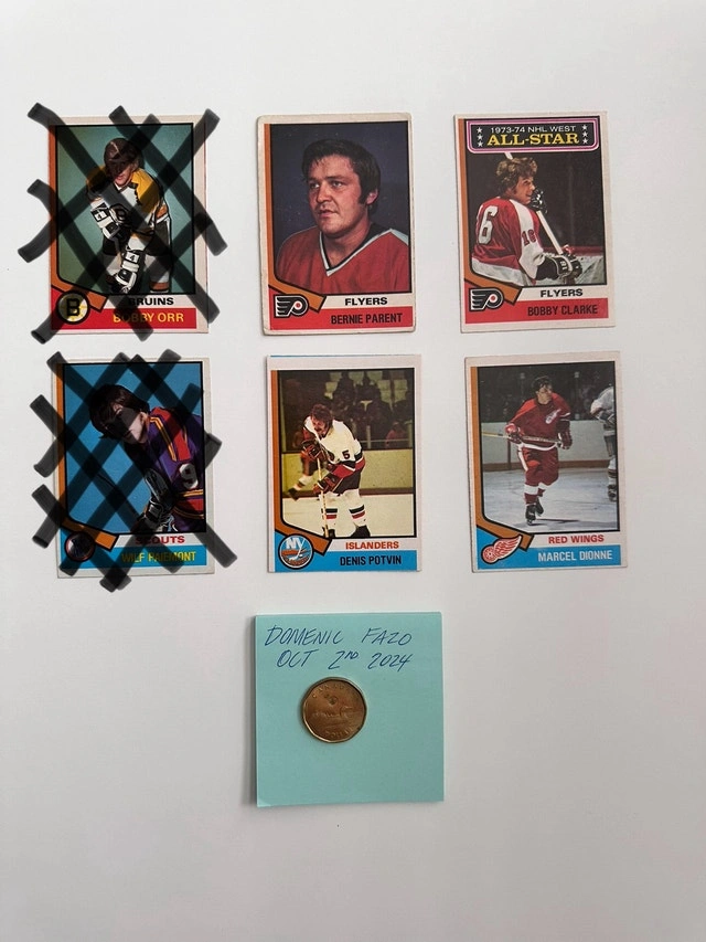 Pick up near Gardiner Exp/Royal York Road next to Mimico GO station in Etobicoke South. If add is up, it is available. Low ballers will be ignored and blocked. Dennis Potvin is the sharpest of the 4 and Bernie Parent is the roughest (with creases), the other 2 are in very good to excellent condition. Cash accepted.