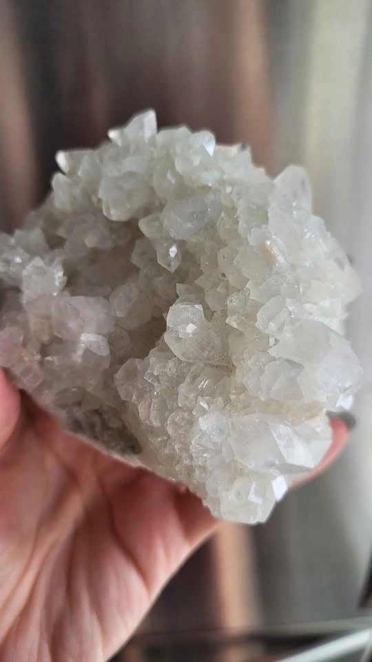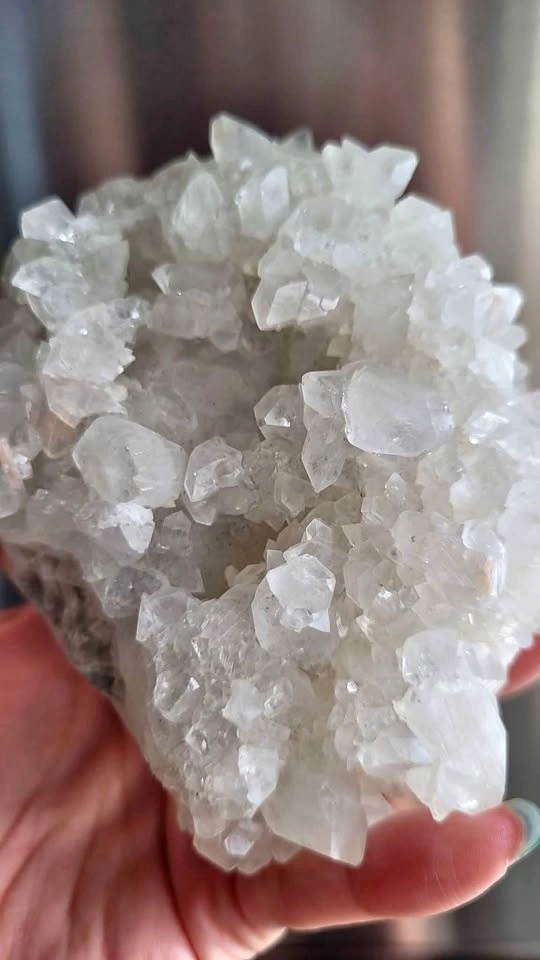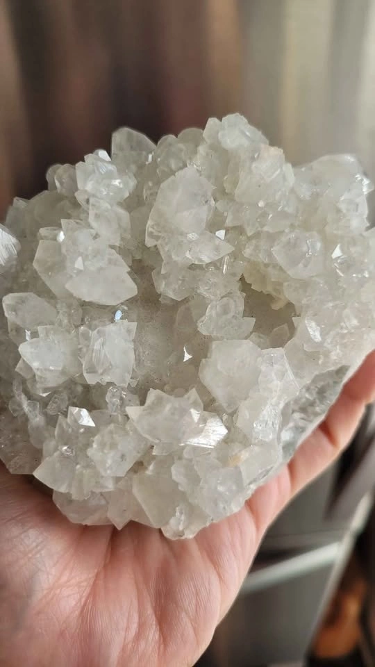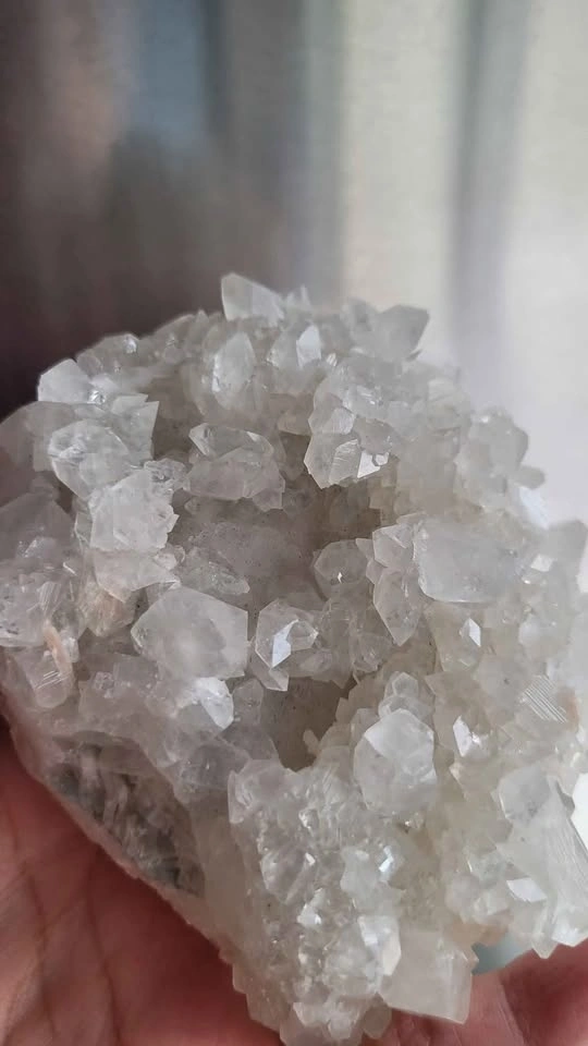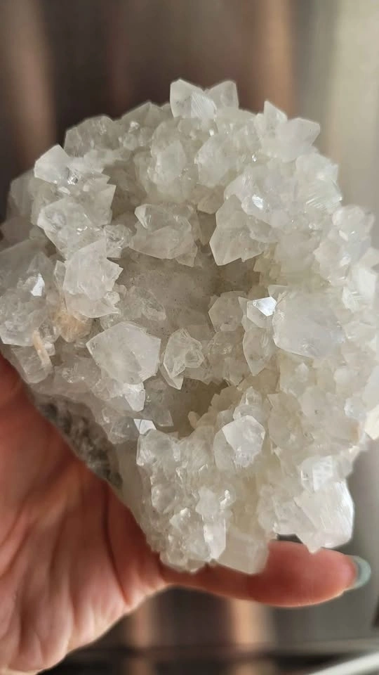 Behold this stunning large, chunky apophyllite cluster! Its intricate formation of translucent, pyramid-shaped crystals radiates a soft translucence. It also has a pocket of sugar-like druzy.