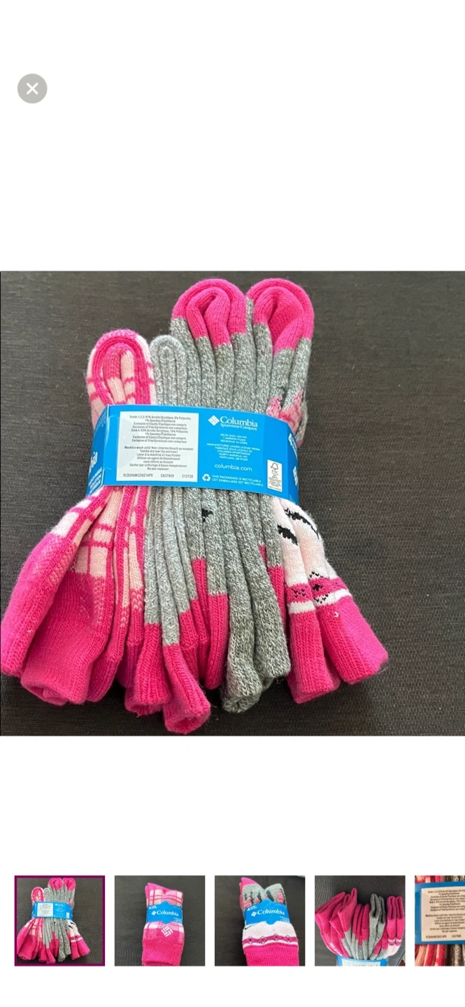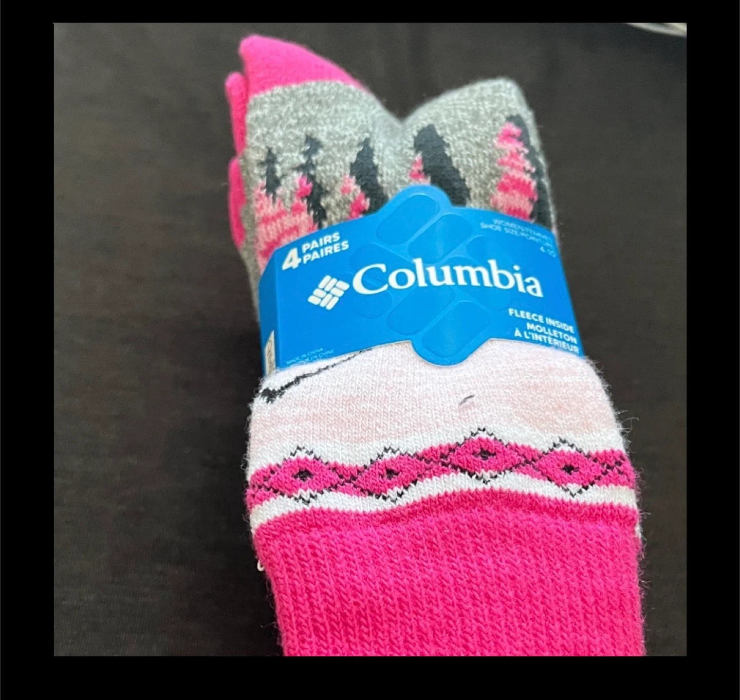 Columbia women's crew socks. Features fleece lining for extra warmth. Includes 4 pairs per pack.