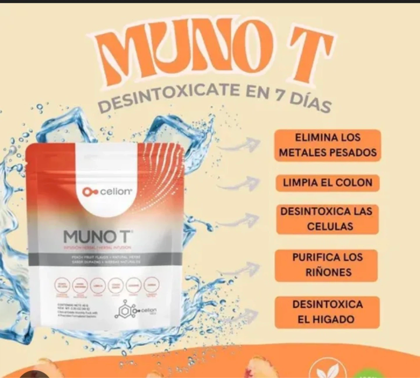 This is the Celion MUNO T herbal infusion. It comes in a peach fruit flavor and natural mint. Contains 30g net wt. 1.05 oz.