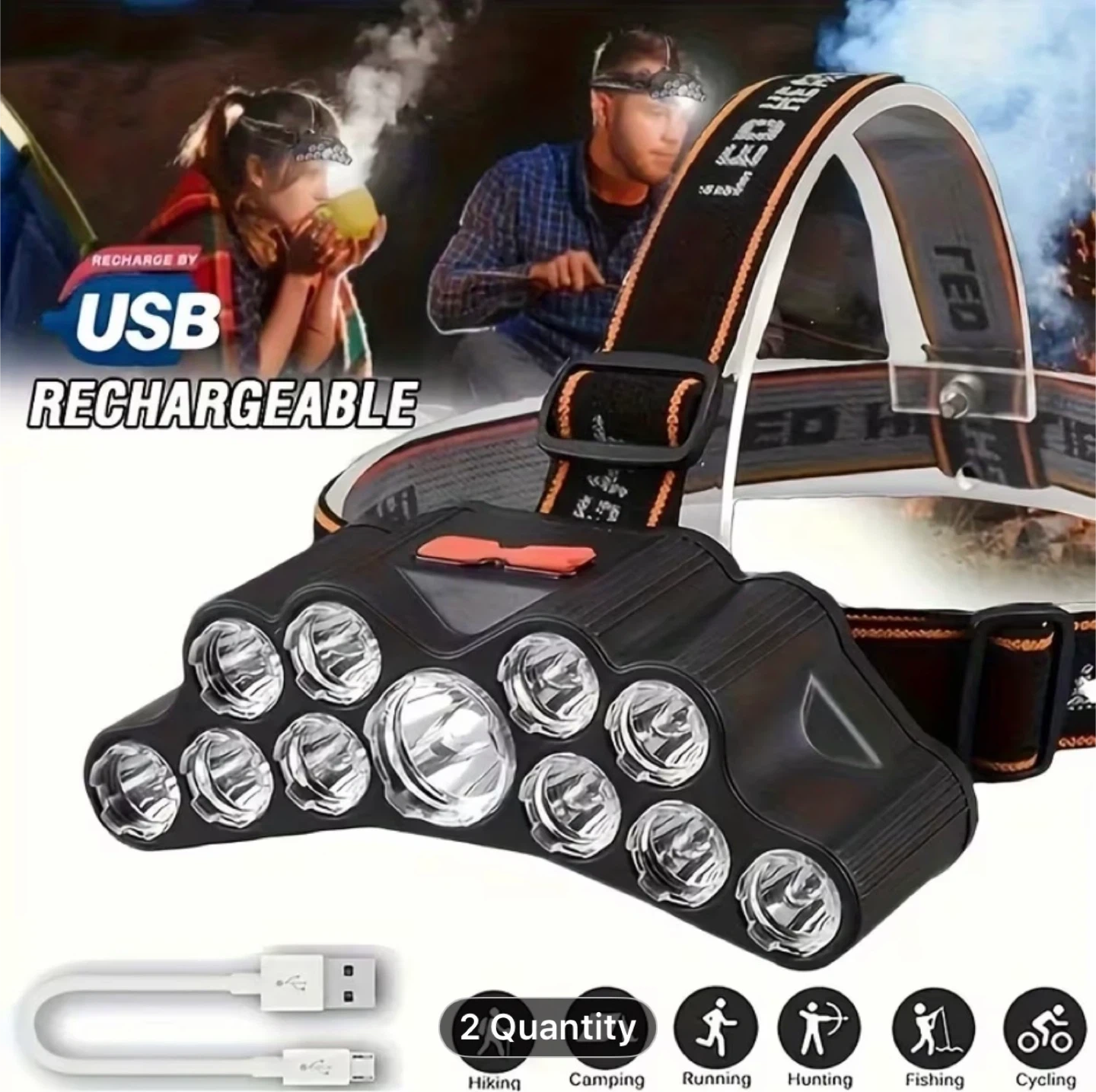 1pcs 11 Core LED Headlamp, Outdoor USB LED