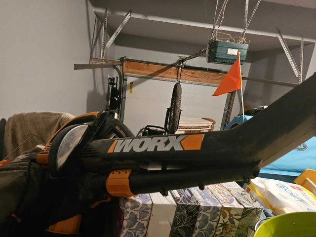 This Worx leaf blower is a powerhouse for keeping your yard tidy, featuring a robust motor that delivers high-speed air to clear leaves and debris quickly. It has seen some action and is in used condition but it is still ready to tackle any yard work challenge you throw its way. Additional features include: Variable speed settings for different tasks, Lightweight design for comfortable use, Easy to assemble and store. Payment: Cash accepted.