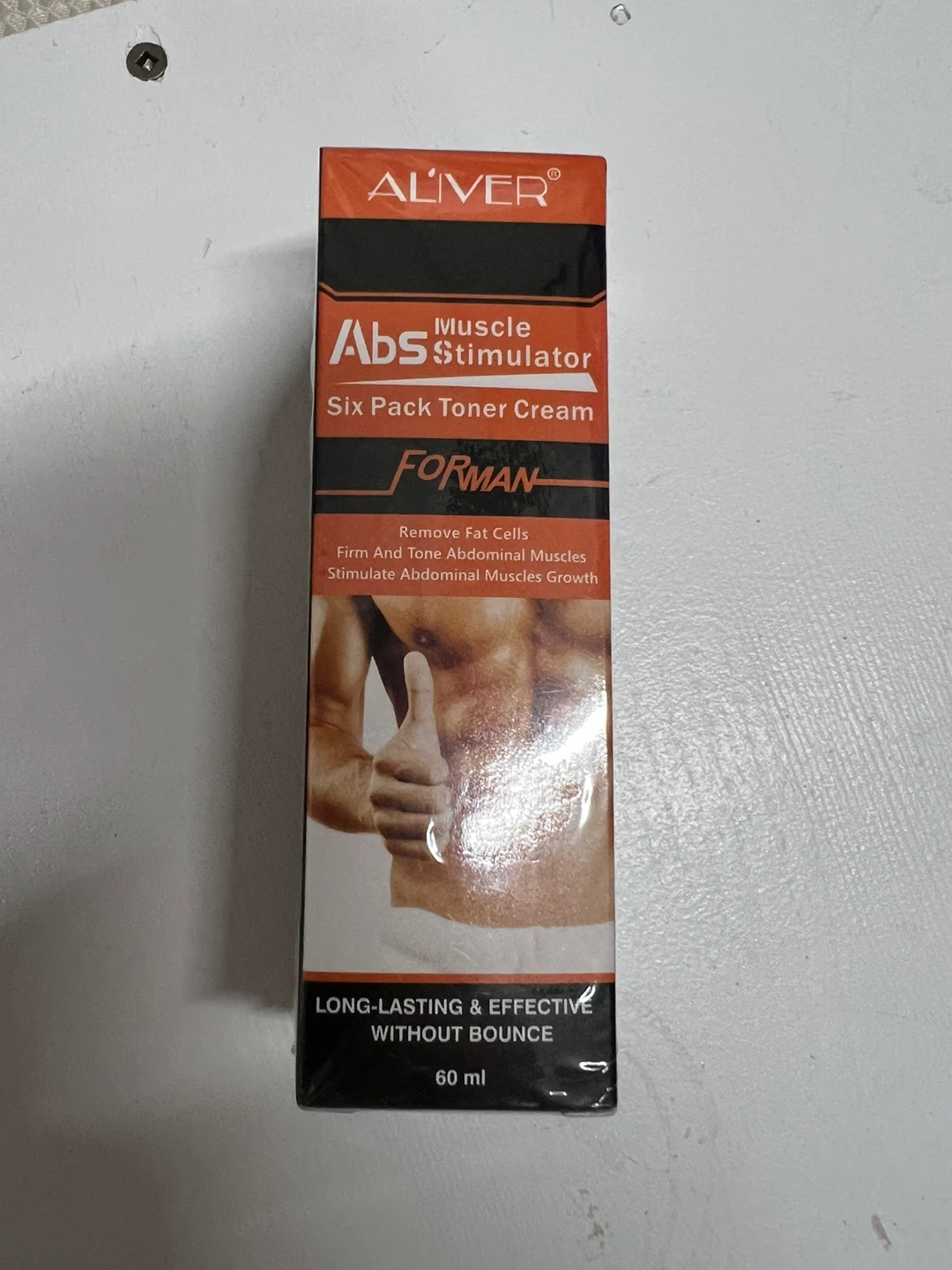 ALIVER Abs Muscle Stimulator Six Pack Toner Cream. It helps remove fat cells, firm and tone abdominal muscles. 60 ml bottle.
