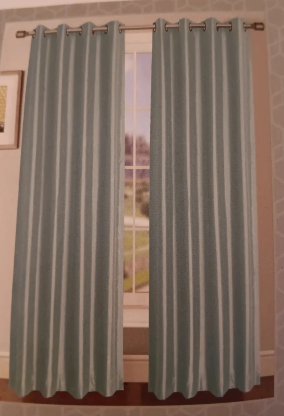Selling a set of two BRAND NEW CHI Window Elements Collection window panels. They come with grommets and each panel measures 38 in x 84 inches for a total size: of 76 in x 84 in. They are a lovely light sage colour and are brand new! CASH offer only.