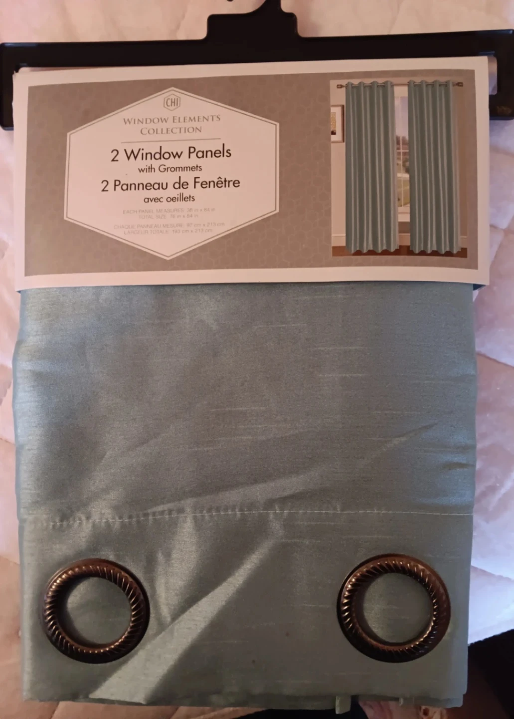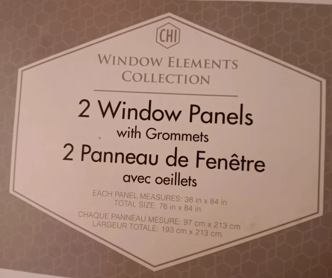 Selling a set of two BRAND NEW CHI Window Elements Collection window panels. They come with grommets and each panel measures 38 in x 84 inches for a total size: of 76 in x 84 in. They are a lovely light sage colour and are brand new! CASH offer only.