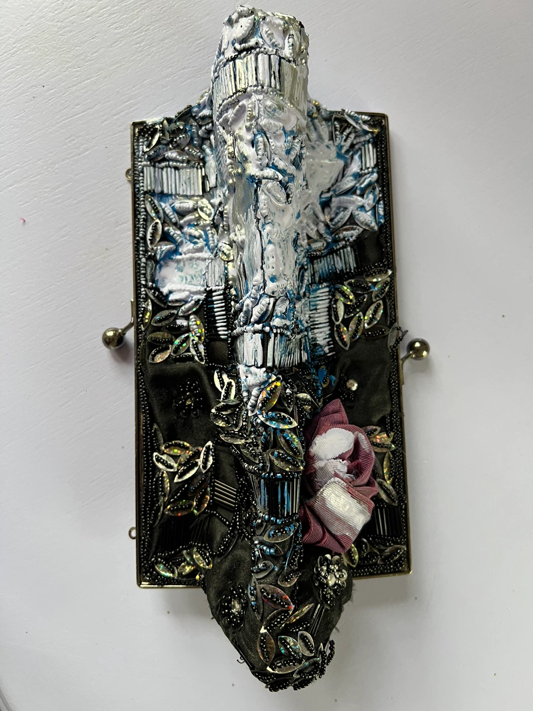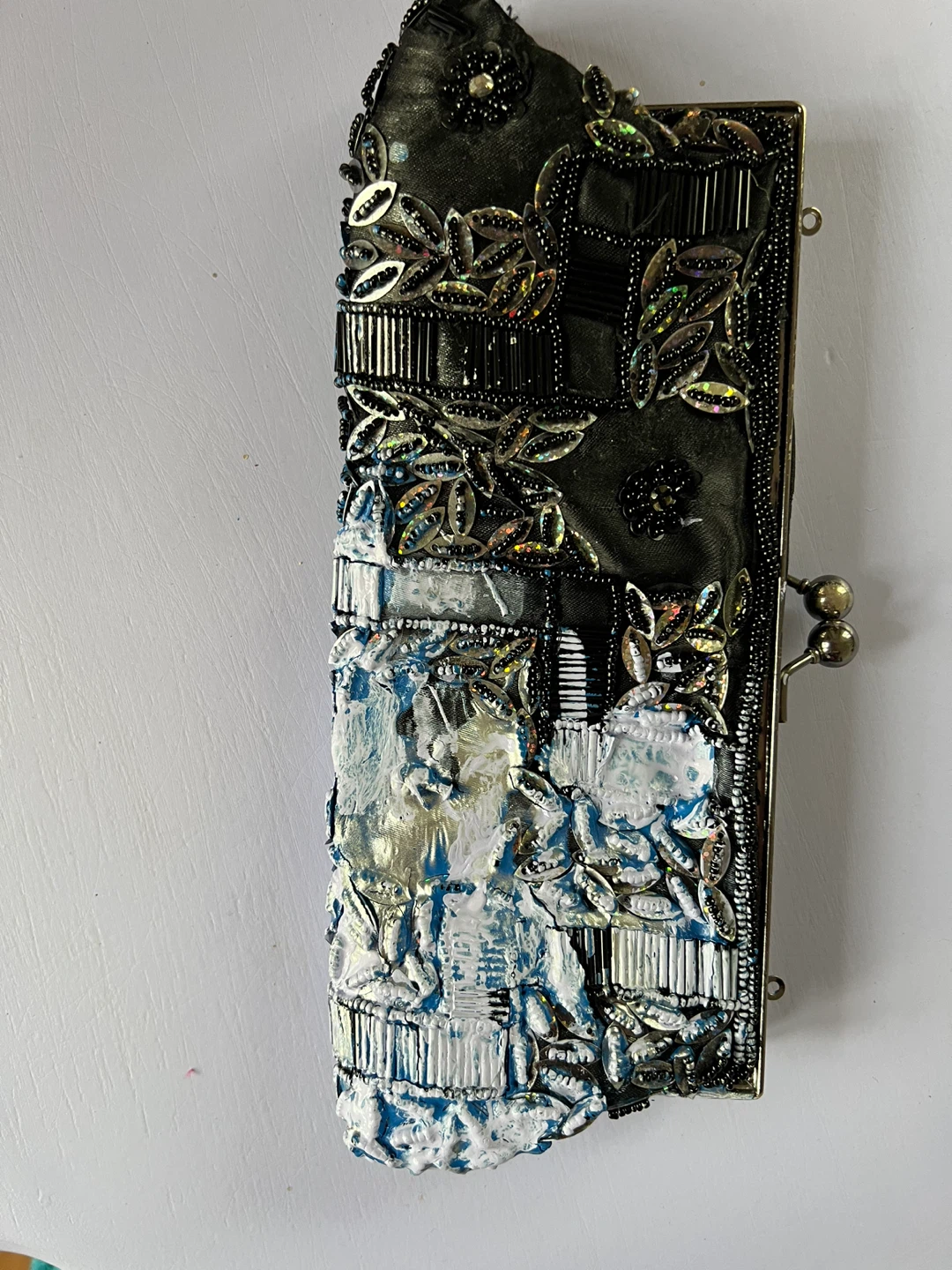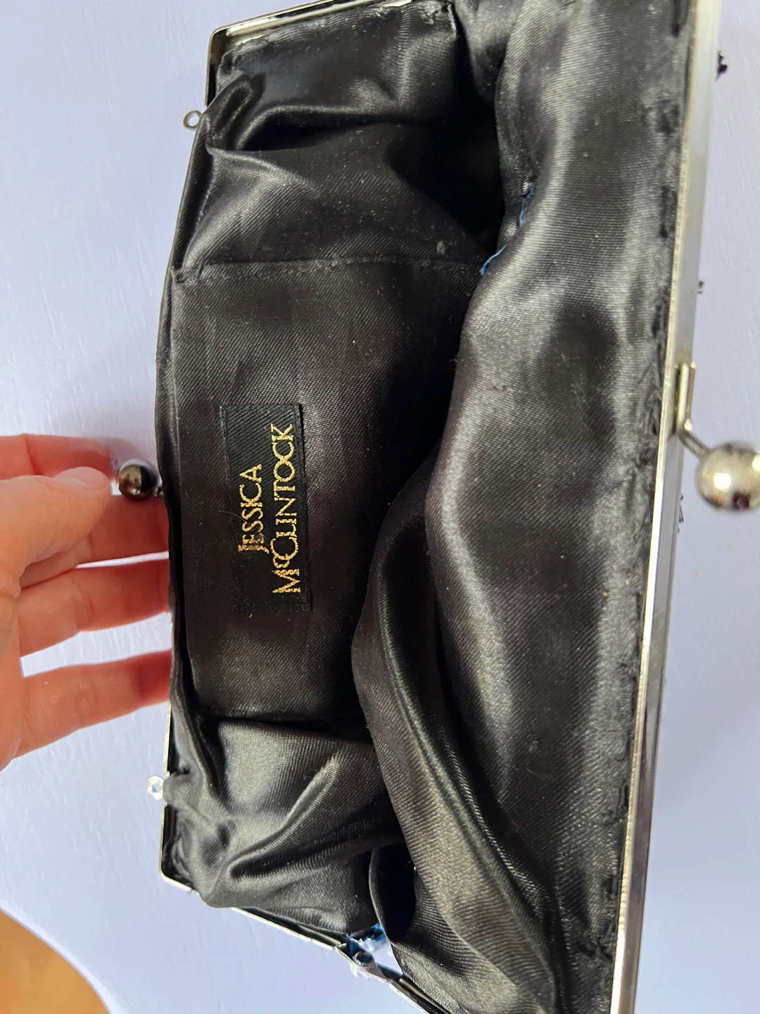 Selling a beautiful Jessica McClintock beaded clutch! It features intricate beadwork and a unique design, perfect for a special occasion or adding a touch of elegance to any outfit. The inside is lined with black satin.