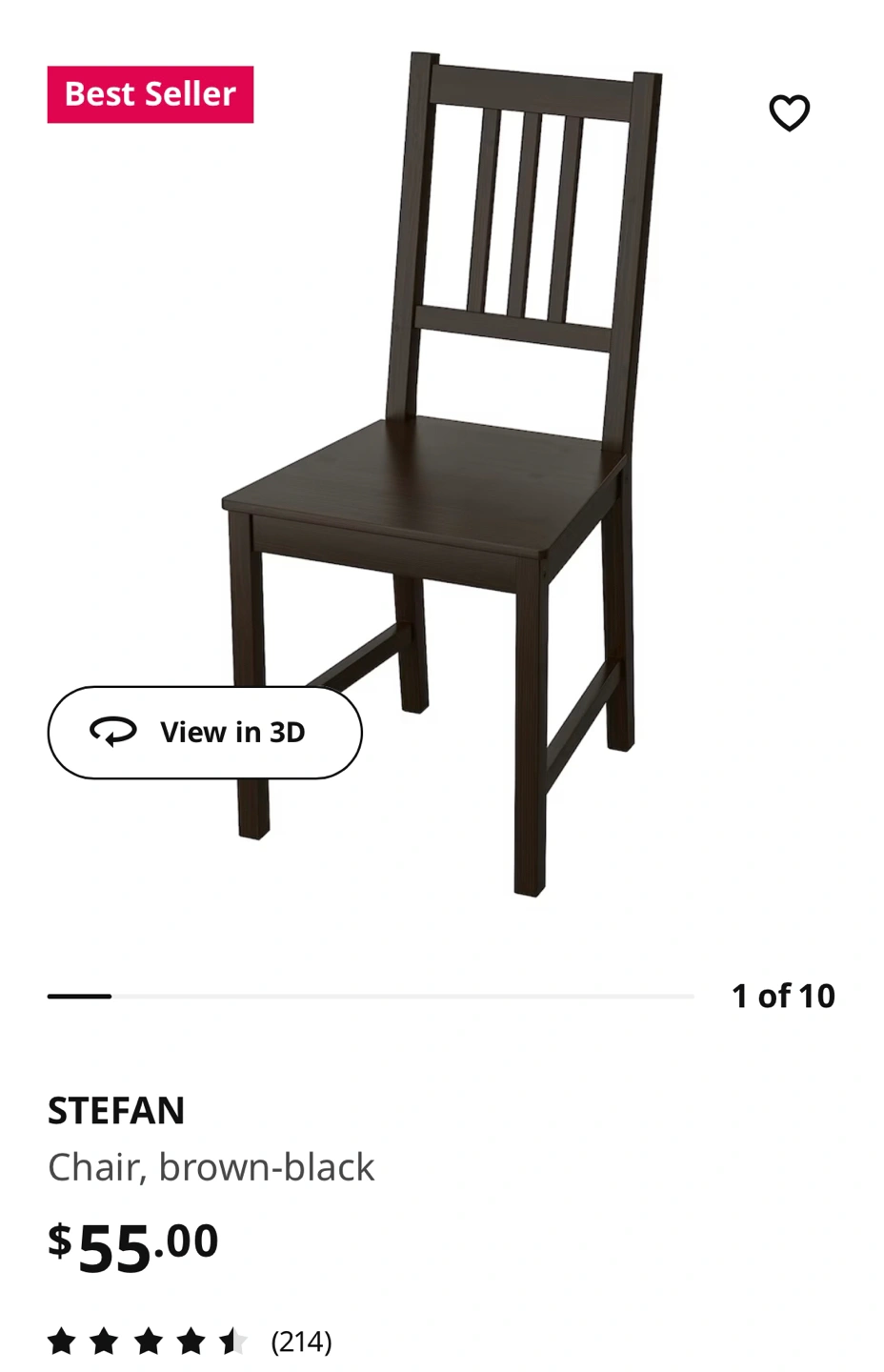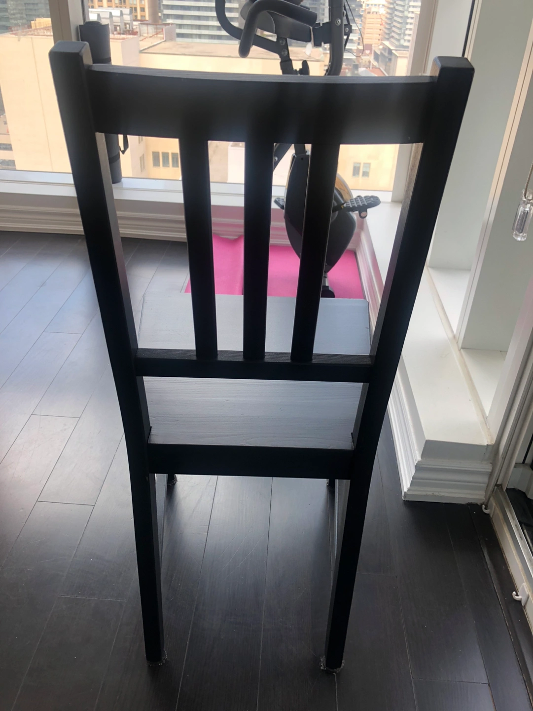 Two (2) Ikea Stefan chair in brown-black. selling as I downsized and don’t need the extra chair anymore. It’s been well loved so it doesn’t have the brand new look. There are no major visible scuffs and it isn’t chipped either.
