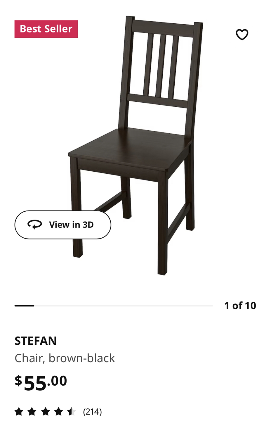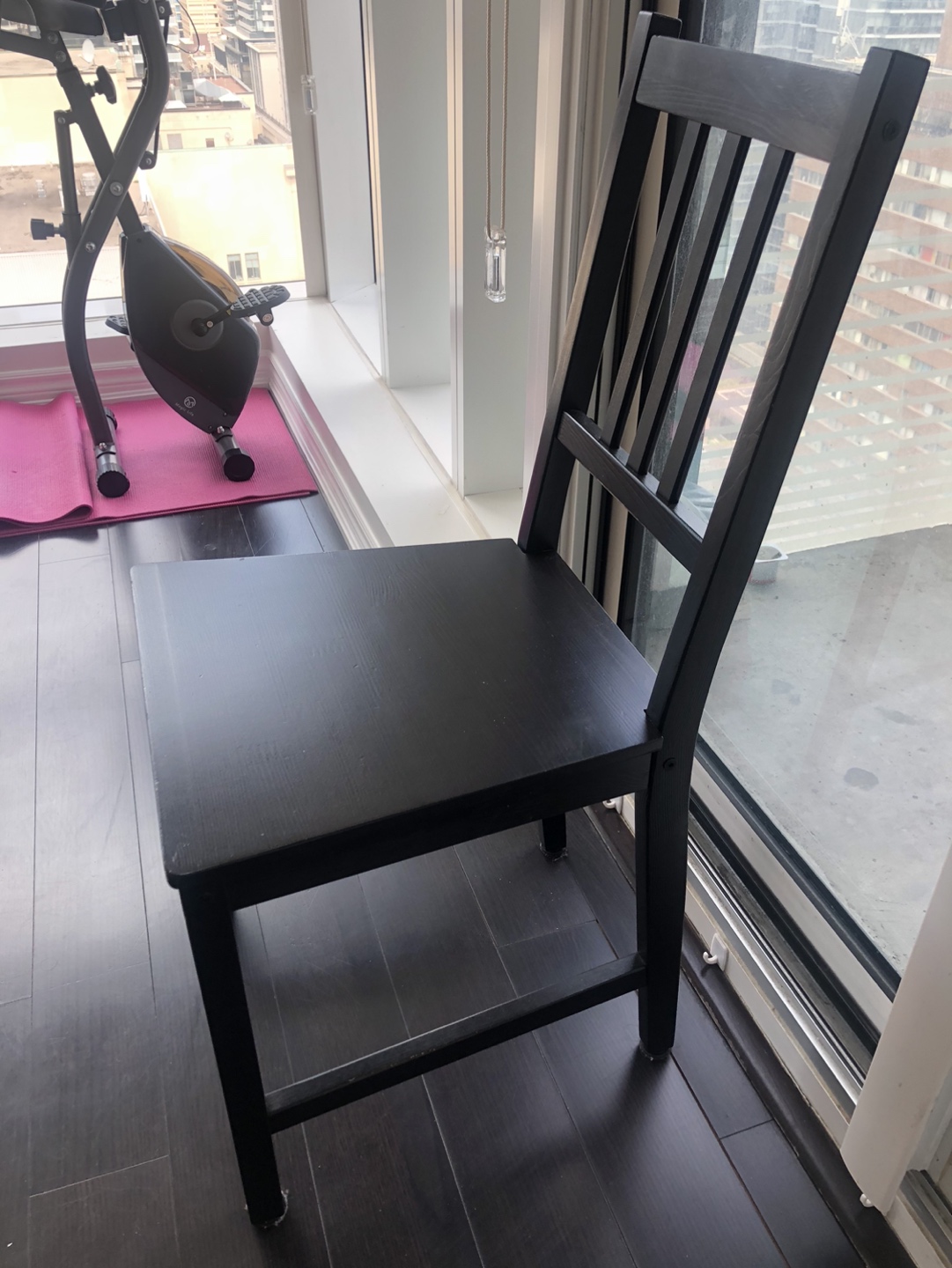 Two (2) Ikea Stefan chair in brown-black. selling as I downsized and don’t need the extra chair anymore. It’s been well loved so it doesn’t have the brand new look. There are no major visible scuffs and it isn’t chipped either.