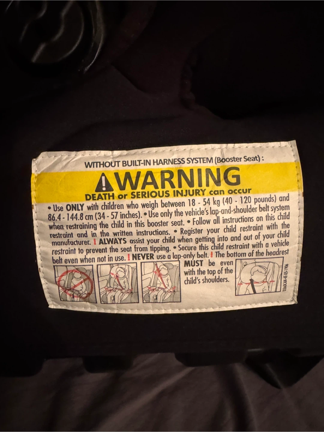 Harmony Defender 360 Elite car seat with built-in harness system. Suitable for children weighing 10 to 29.5 kg (22-65 lbs) in harness mode. Booster seat mode for children 18-54 kg (40-120 lbs). Includes original packaging and accessories.